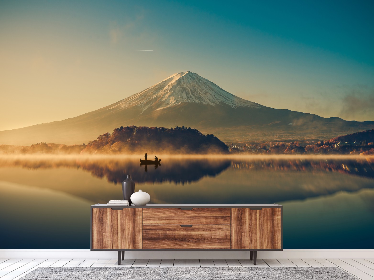 Fototapete Sonnenaufgang über Mount Fuji am Kawaguchiko-See