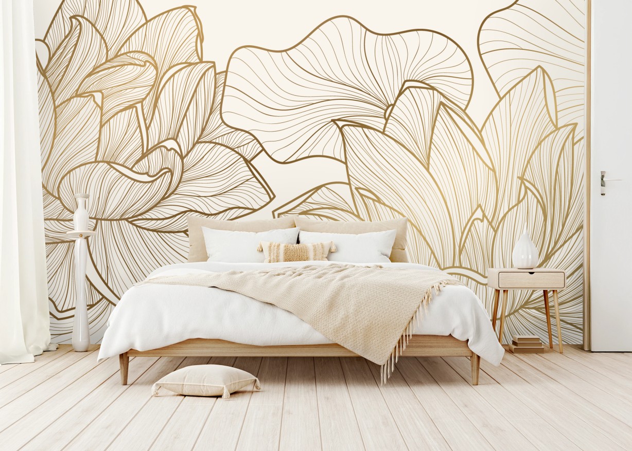 Fototapete Elegante goldene linien blumenillustration