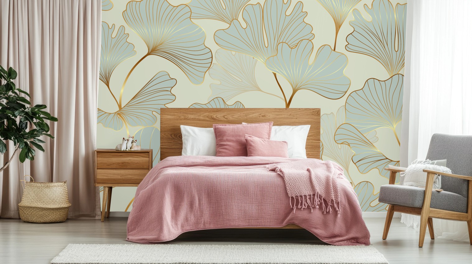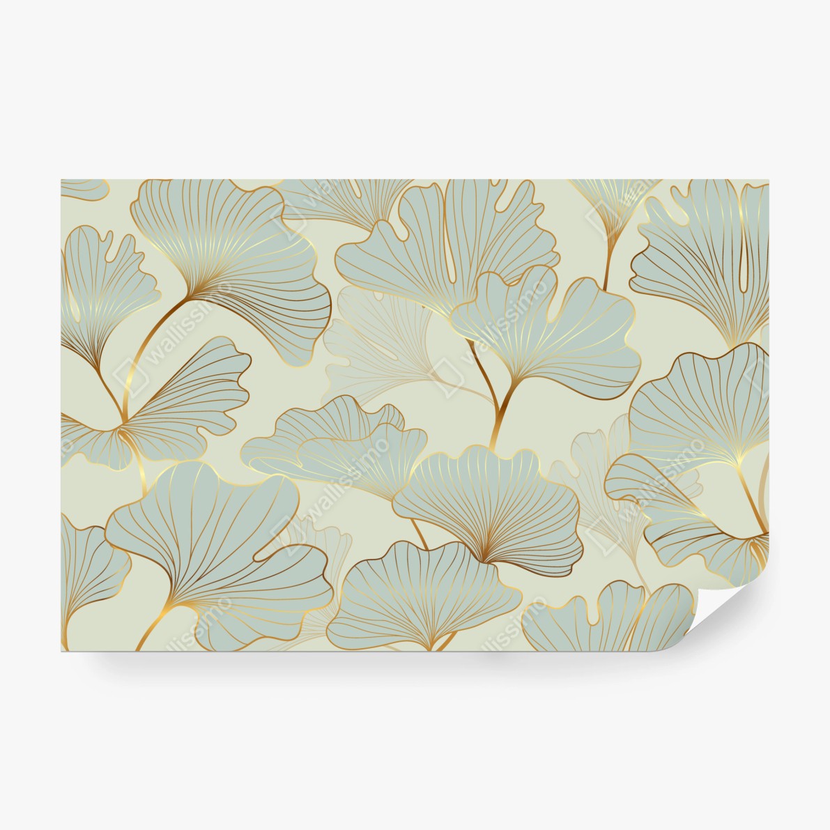 Fototapete Pastell ginkgo blättermuster mit goldakzenten