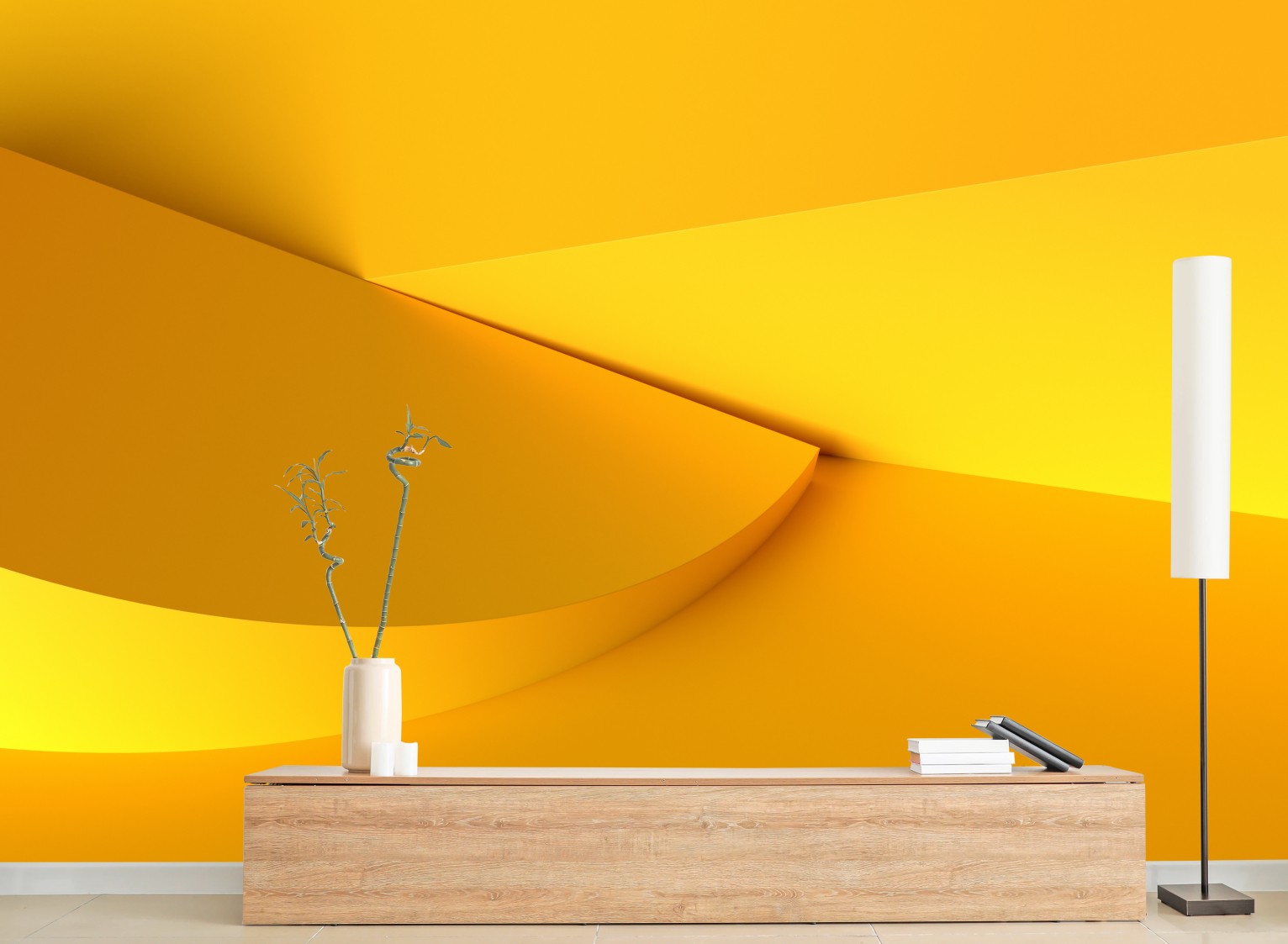Lebendige gelbe geometrische Komposition verleiht jedem Raum einen modernen, minimalistischen Akzent und schafft Tiefe mit klaren 3D-Formen.MehrWeniger