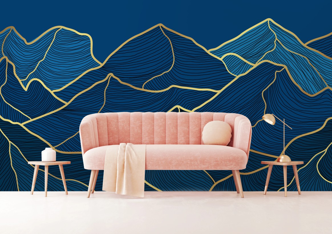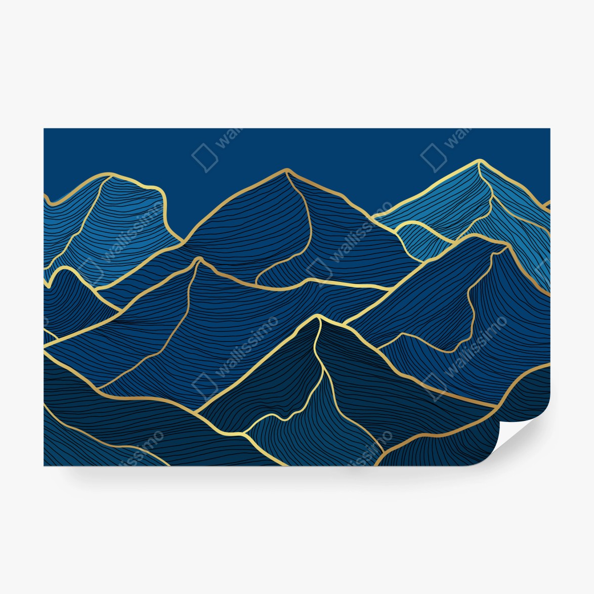 Fototapete Goldene linien berglandschaft auf dunkelblauem hintergrund