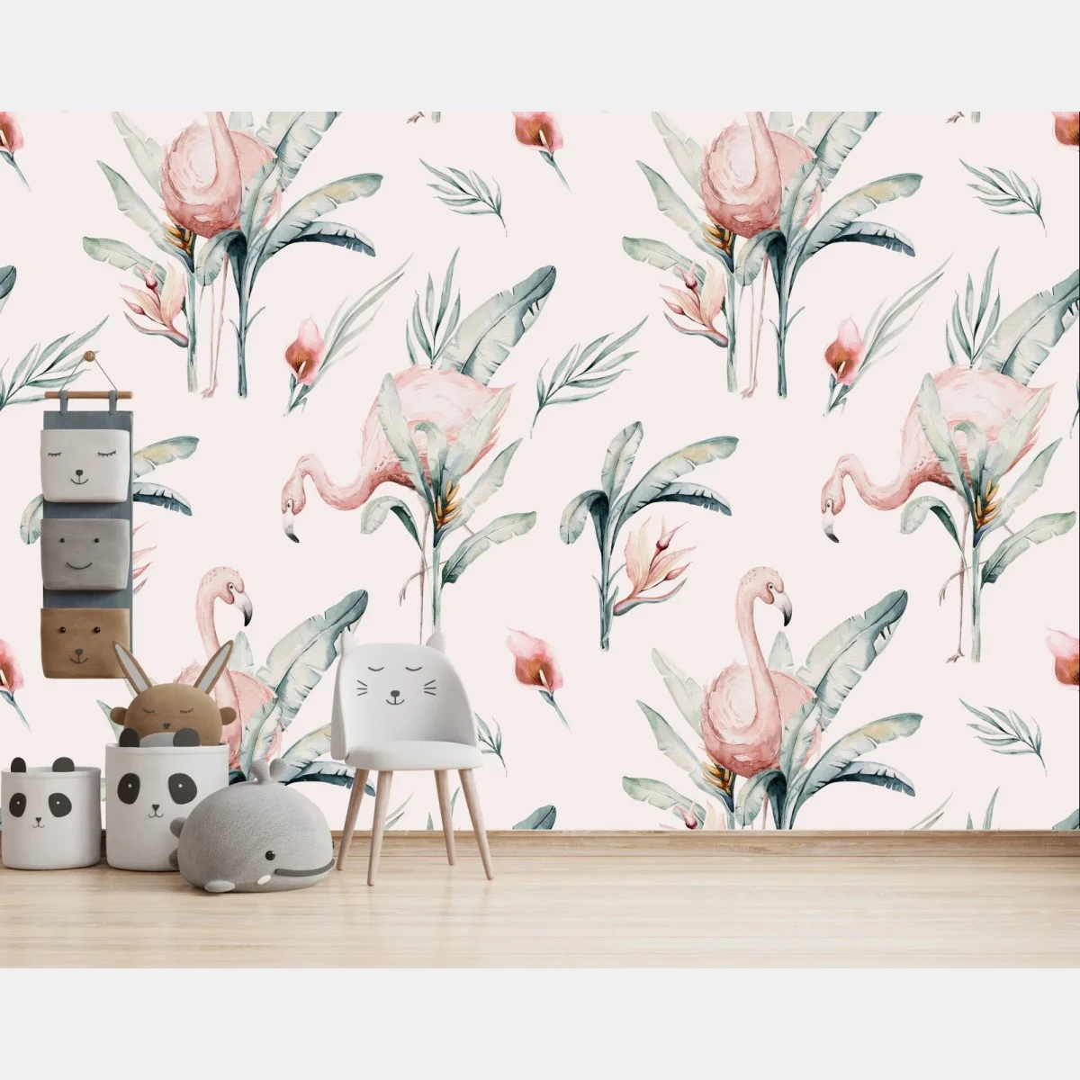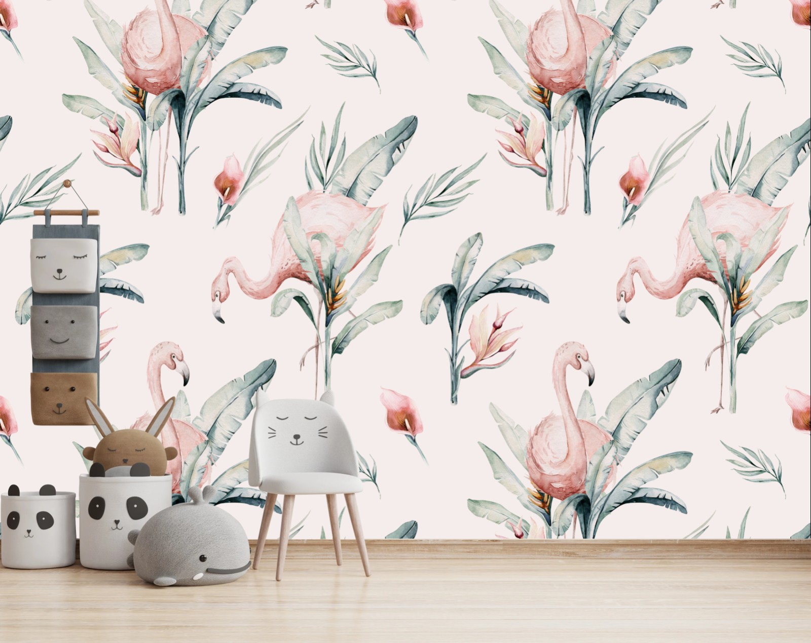 Fototapete Aquarell flamingo tropisches muster