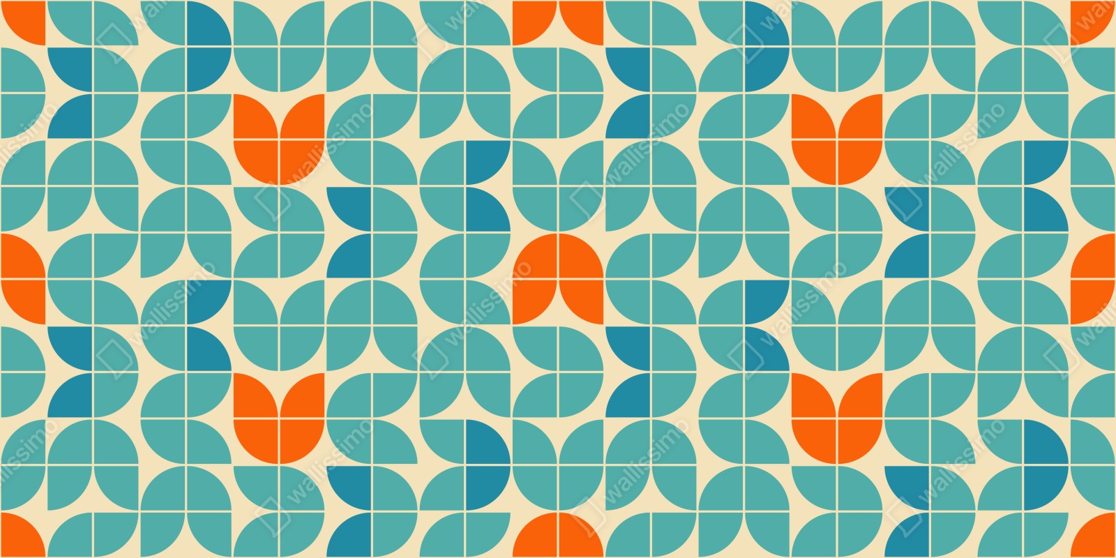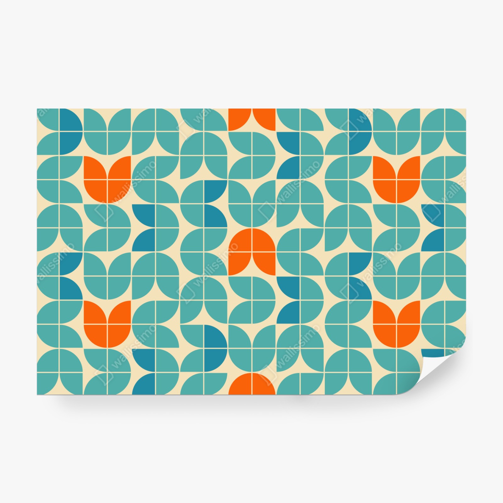 Fototapete retro geometrisches fliesenmuster in türkis und orange