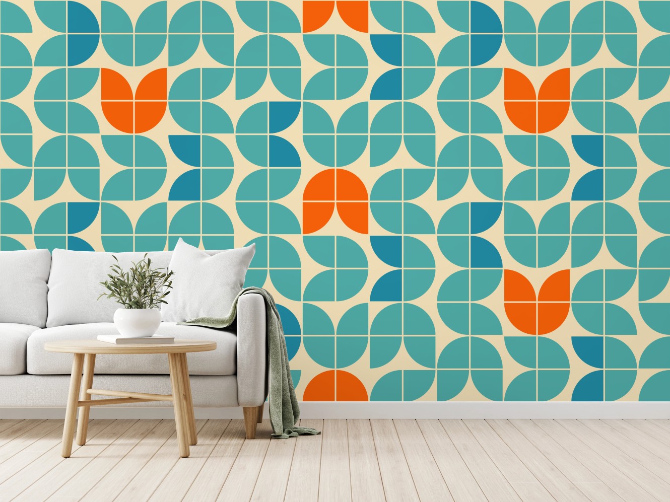 Fototapete Retro geometrisches fliesenmuster in türkis und orange