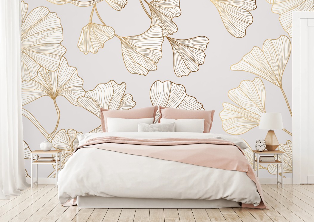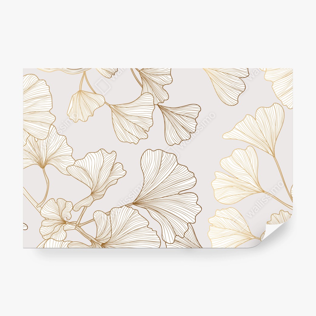 Fototapete Feines goldenes ginkgo-blätter muster