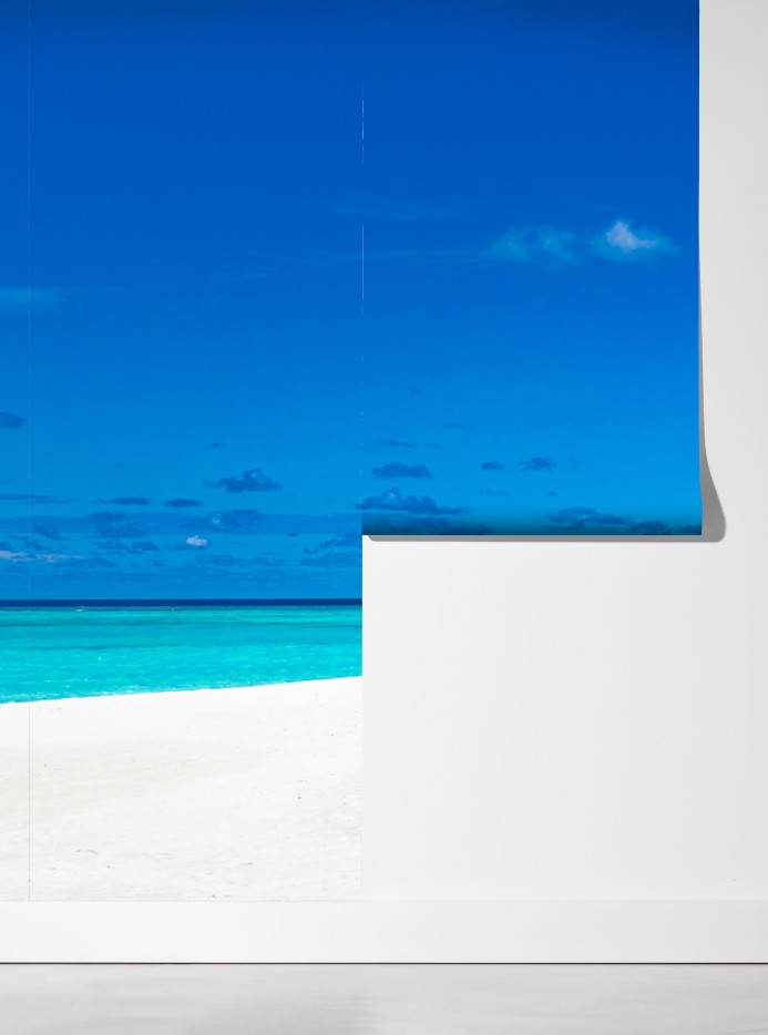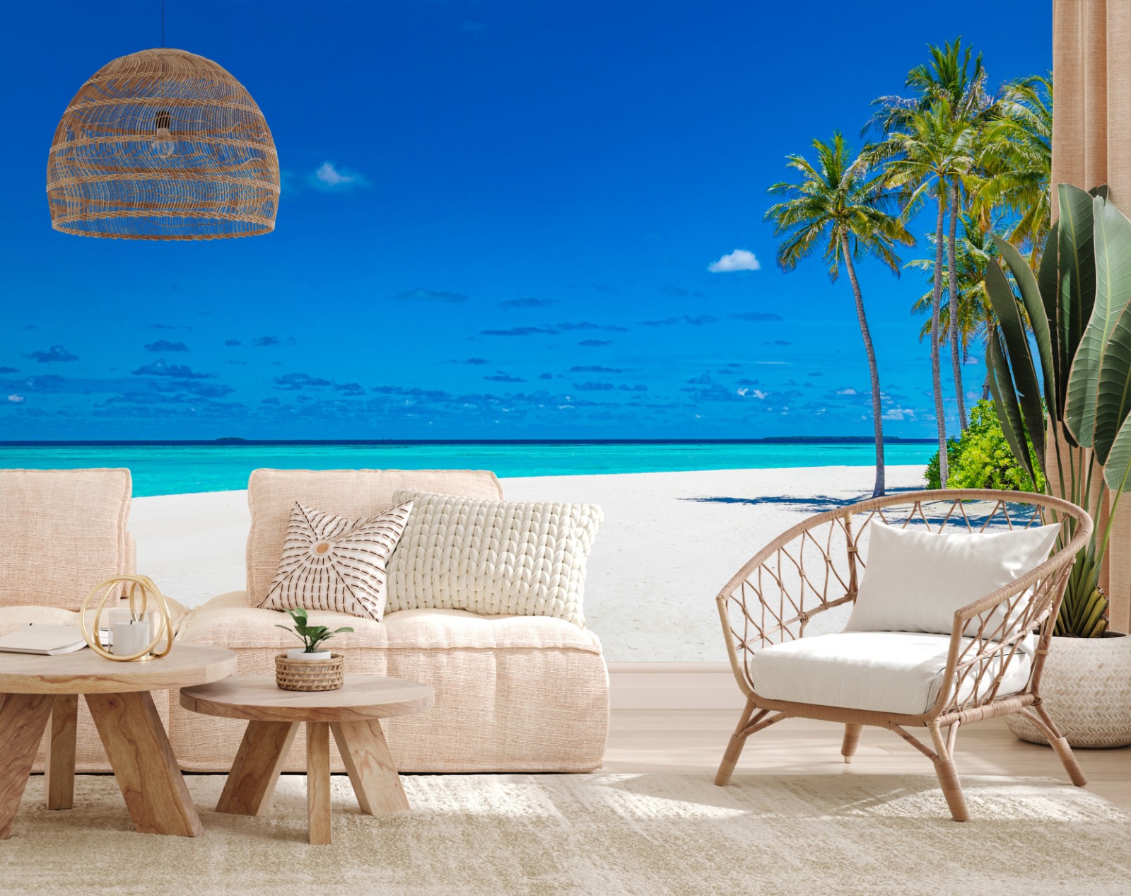 Bringen Sie ruhige, tropische Stimmung in Ihr Zuhause mit dieser lebendigen türkisfarbenen Strandaufnahme, ideal zur Schaffung einer entspannenden Atmosphäre.