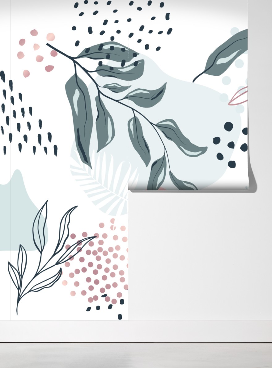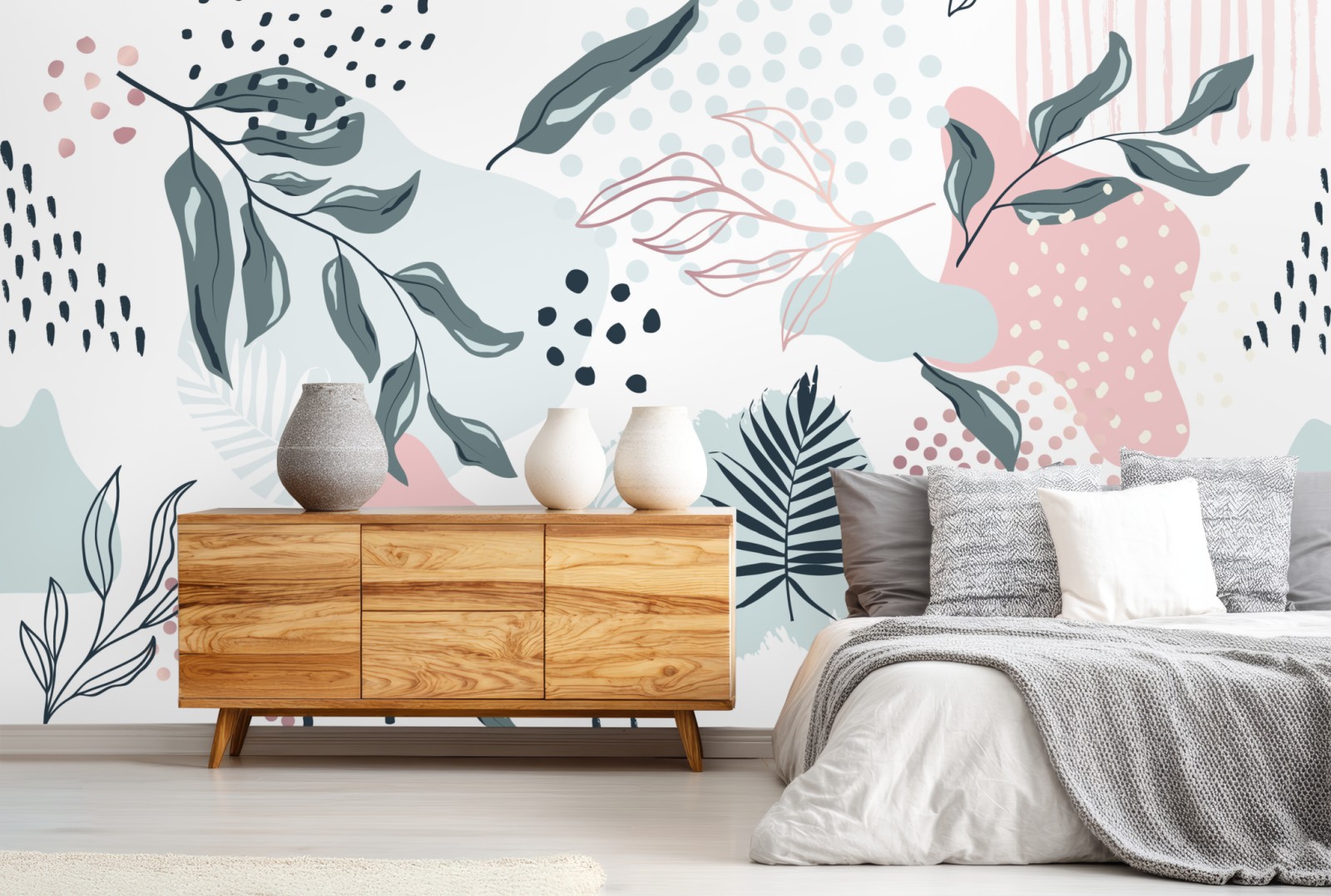 Fototapete pastellfarbenes botanisches abstraktes muster