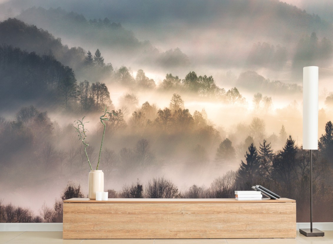 Fototapete Nebliger wald im morgengrauen