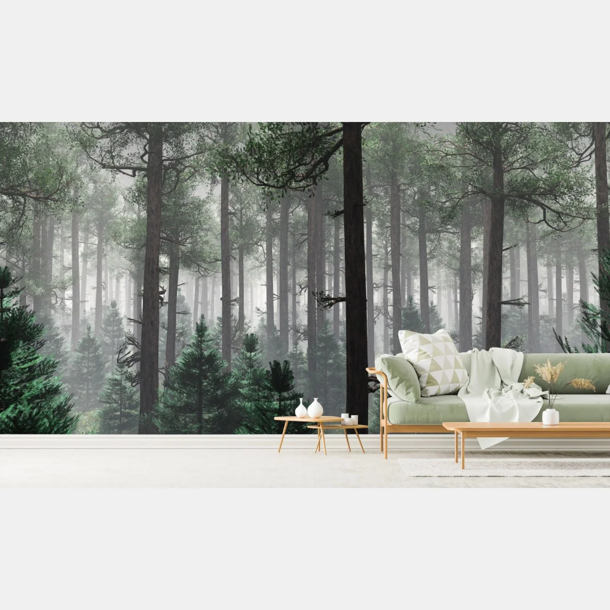 Fototapete Nebliger immergrüner wald