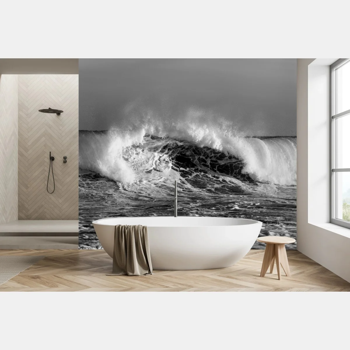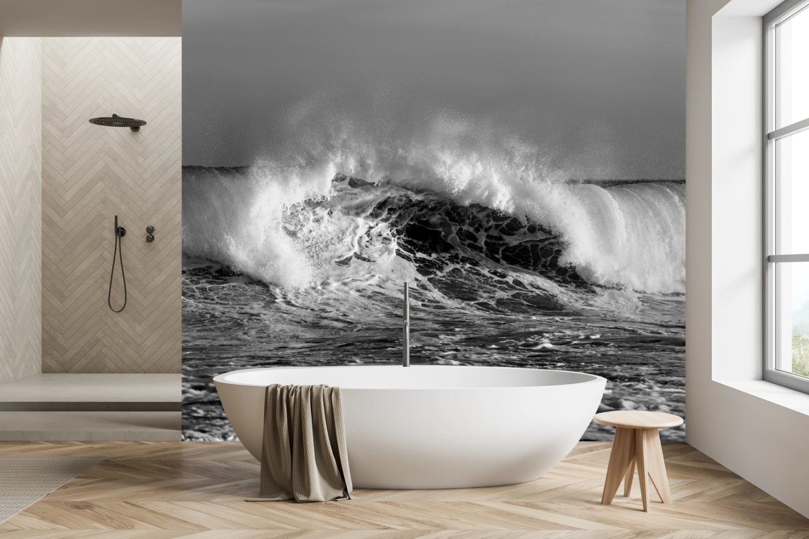 Fototapete Dramatische schwarzweiß-welle des ozeans