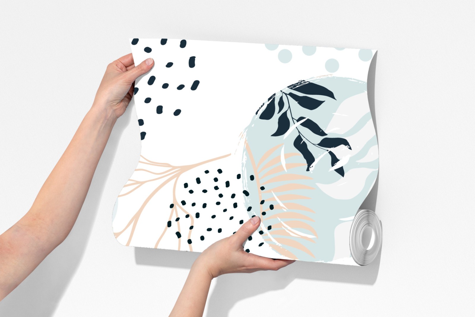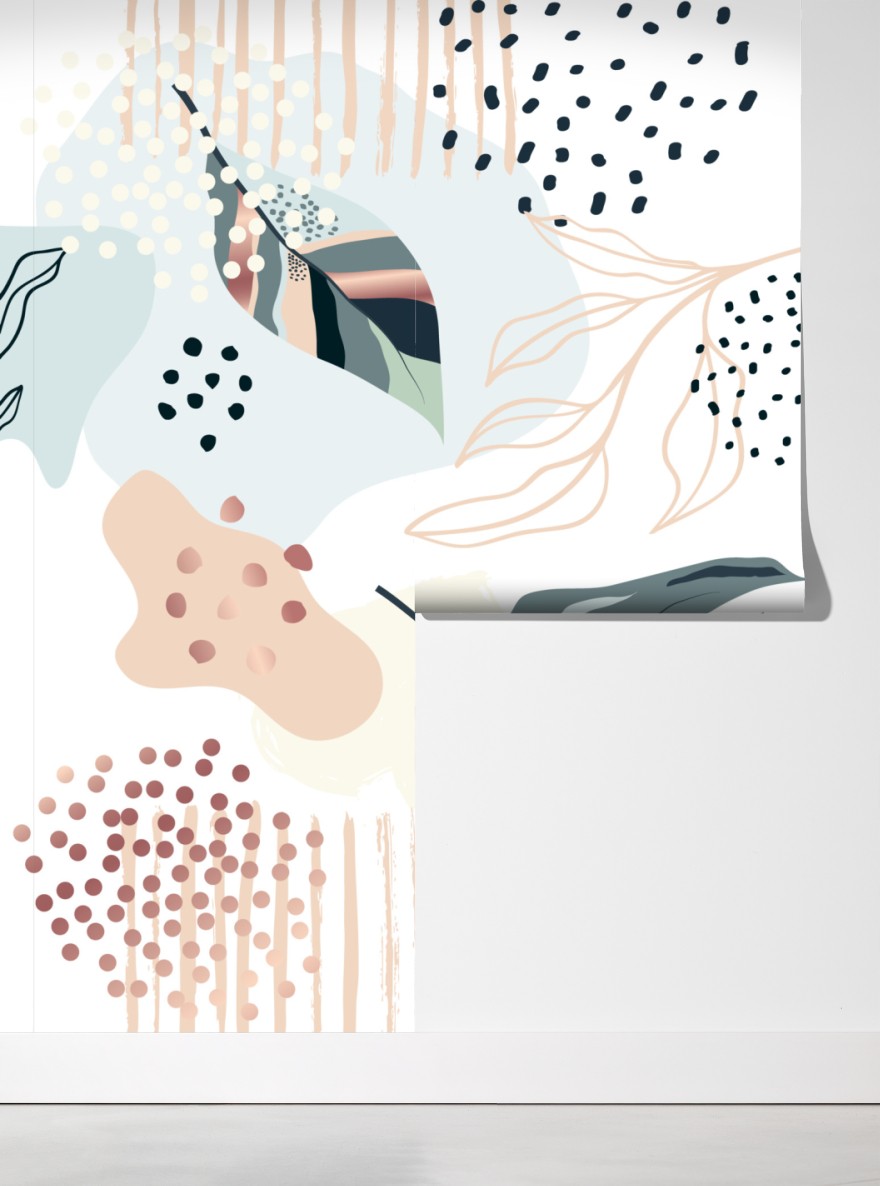 Bringen Sie beruhigende Pastelltöne und organische Blattmotive in Ihren Raum mit diesem modernen abstrakten botanischen Design, ideal für subtile Dekoration.