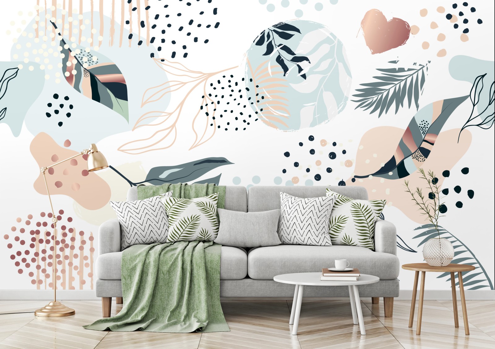 Fototapete Pastellfarbenes botanisches abstraktes muster