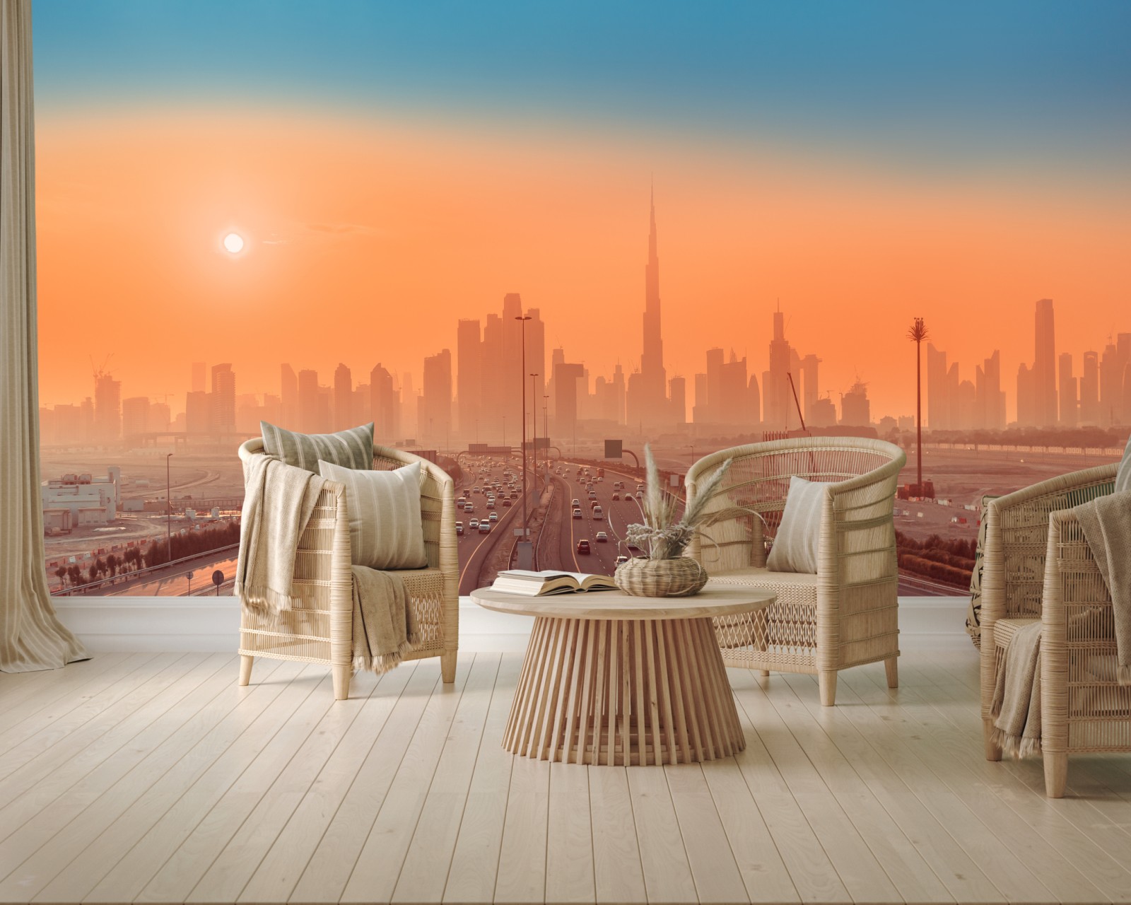 Fototapete Dubai skyline bei sonnenaufgang