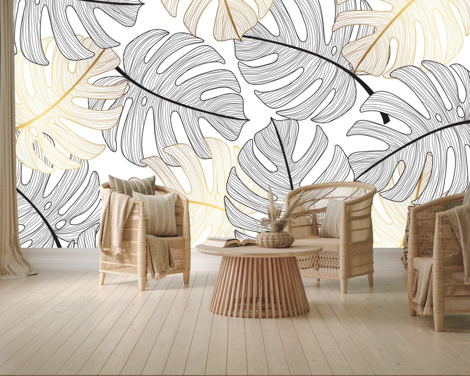 Fototapete Monstera-blattmuster mit goldakzenten