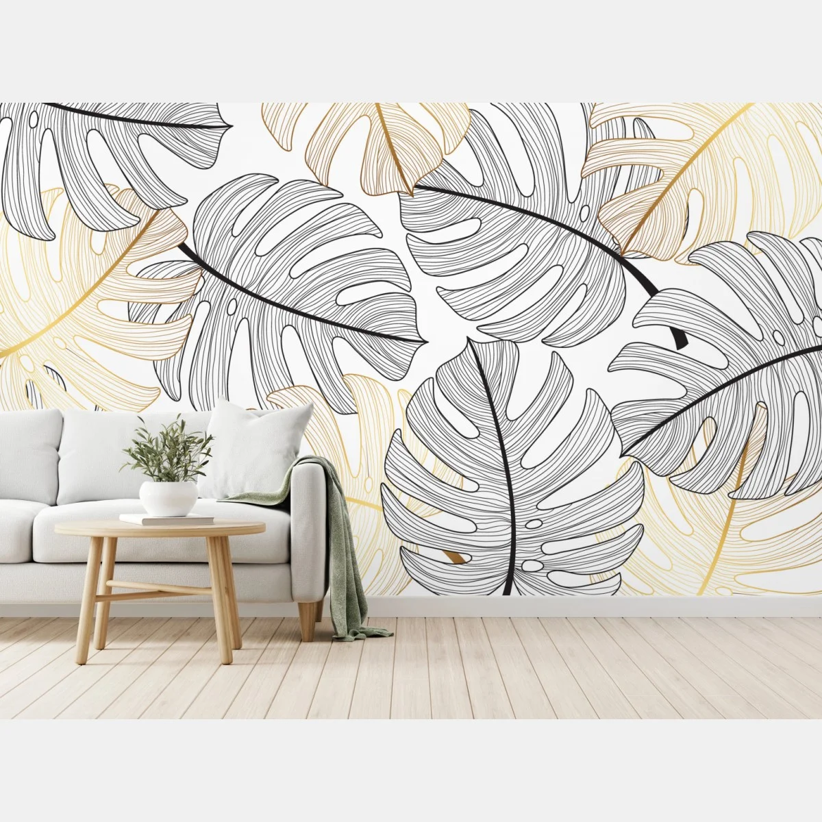 Fototapete Monstera-blattmuster mit goldakzenten