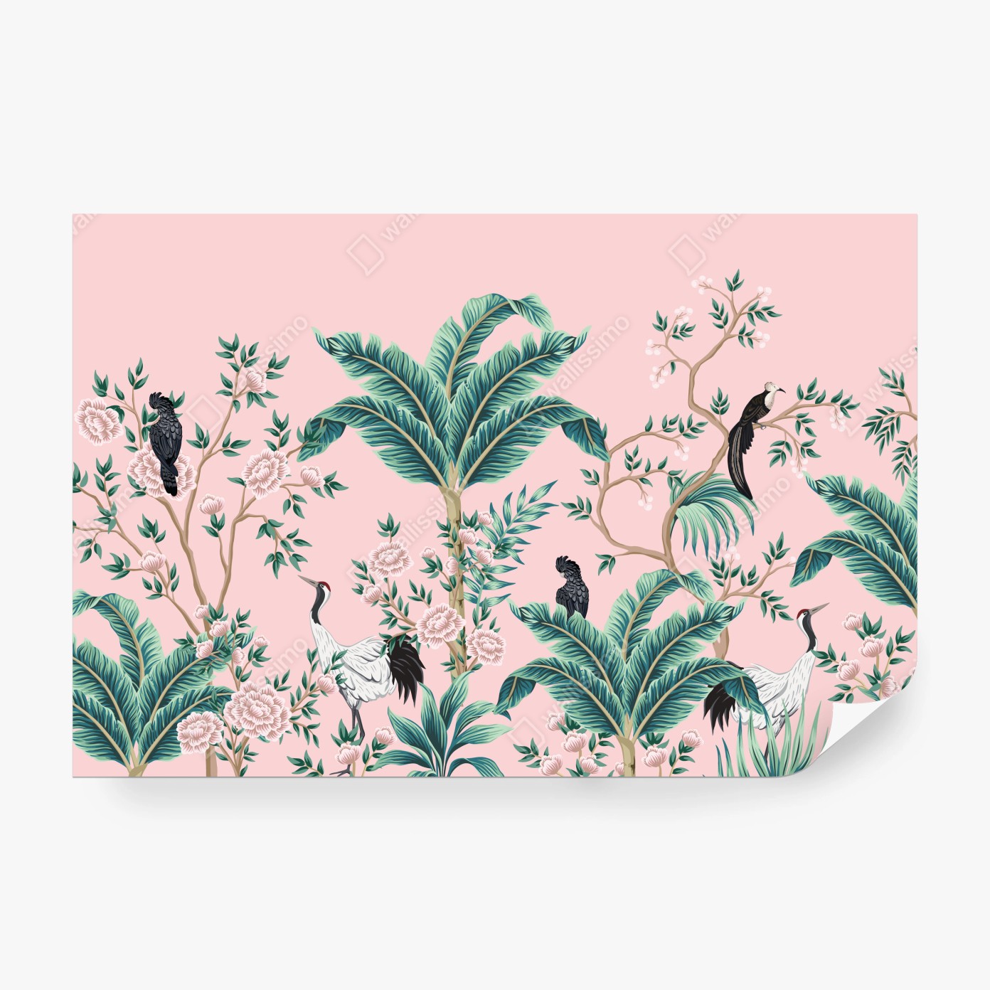 Fototapete Pastell tropisches botanisches muster mit kranichen