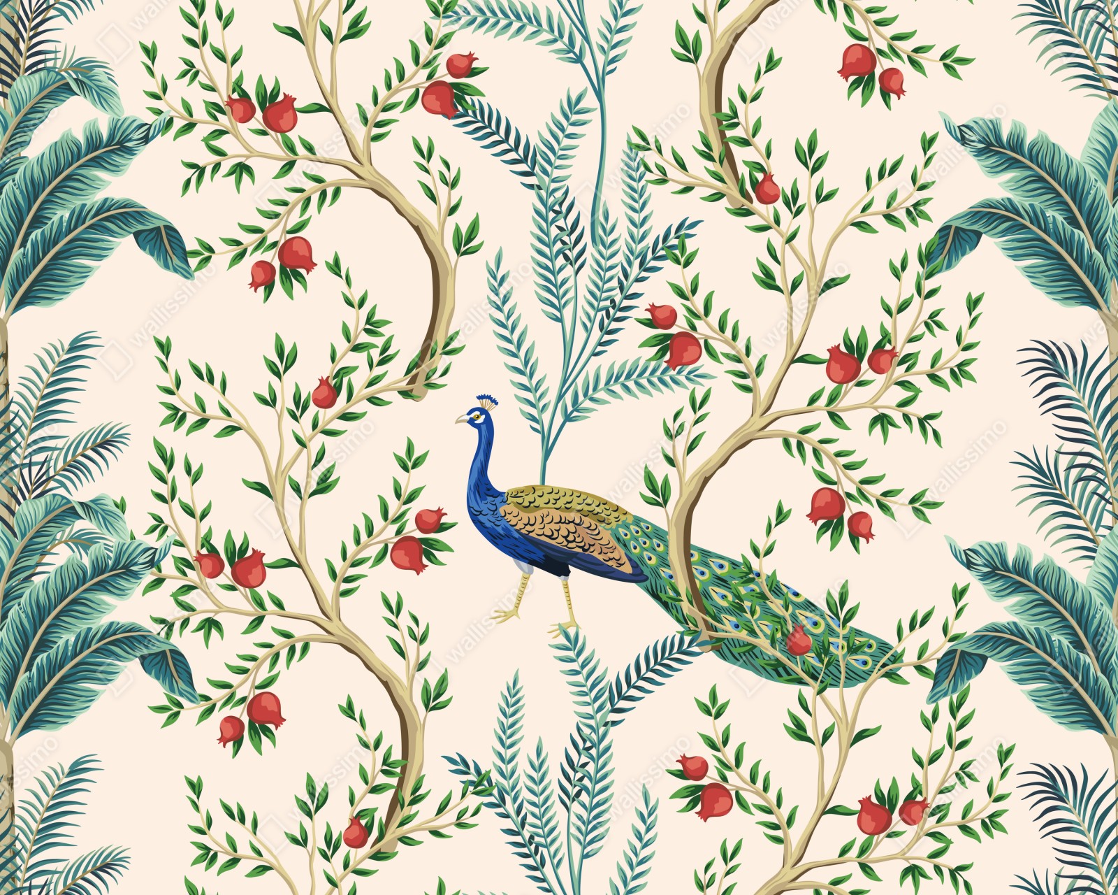 Fototapete pfau zwischen granatästen