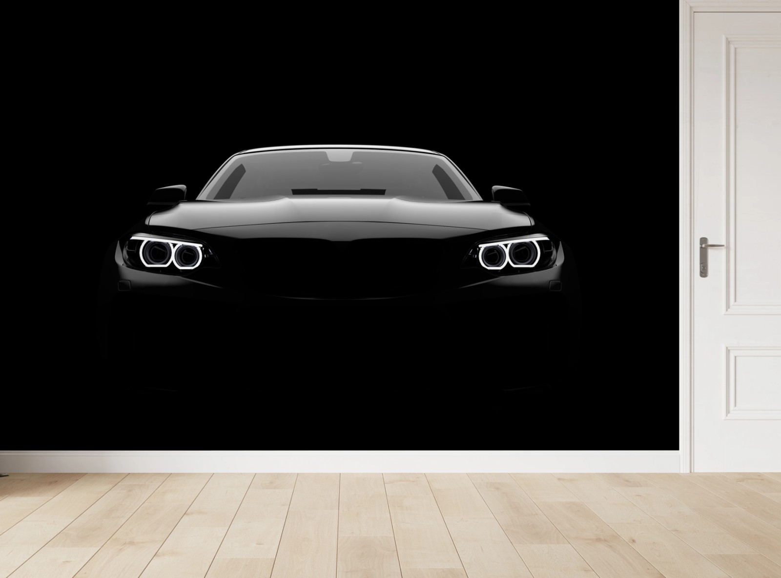 Fototapete Eleganter schwarzer sportwagen von vorn