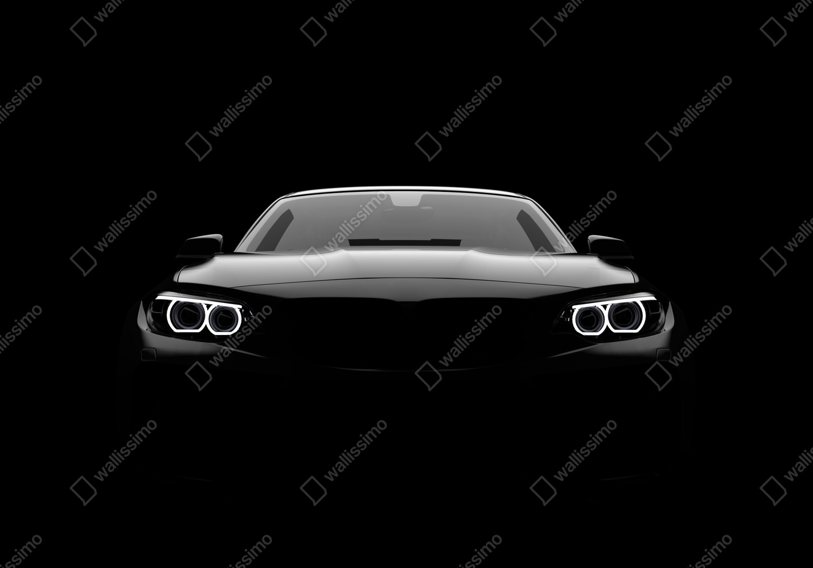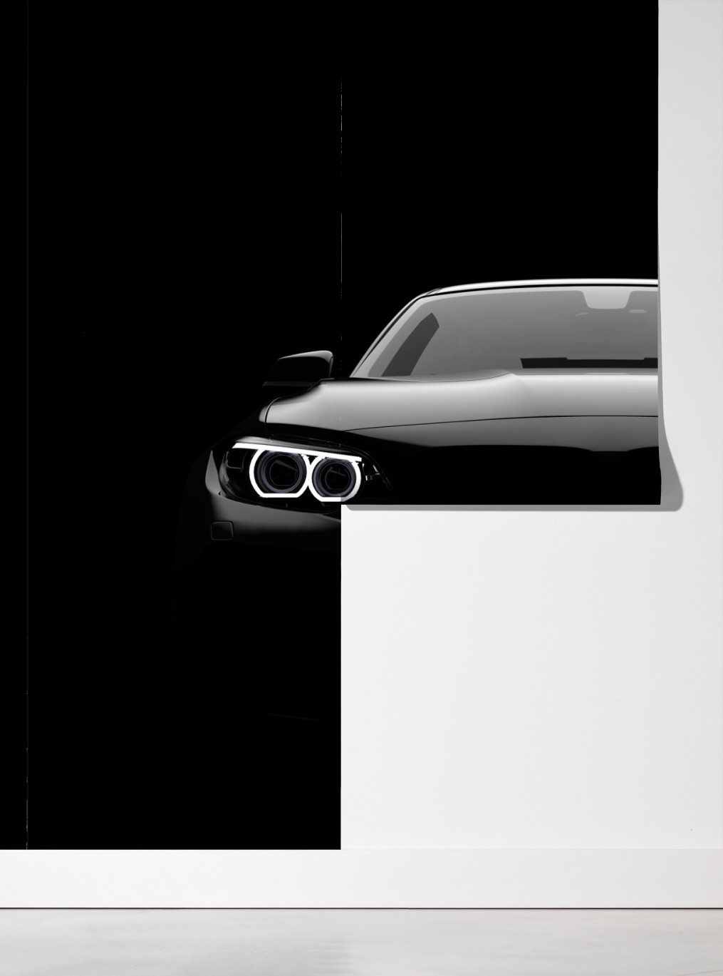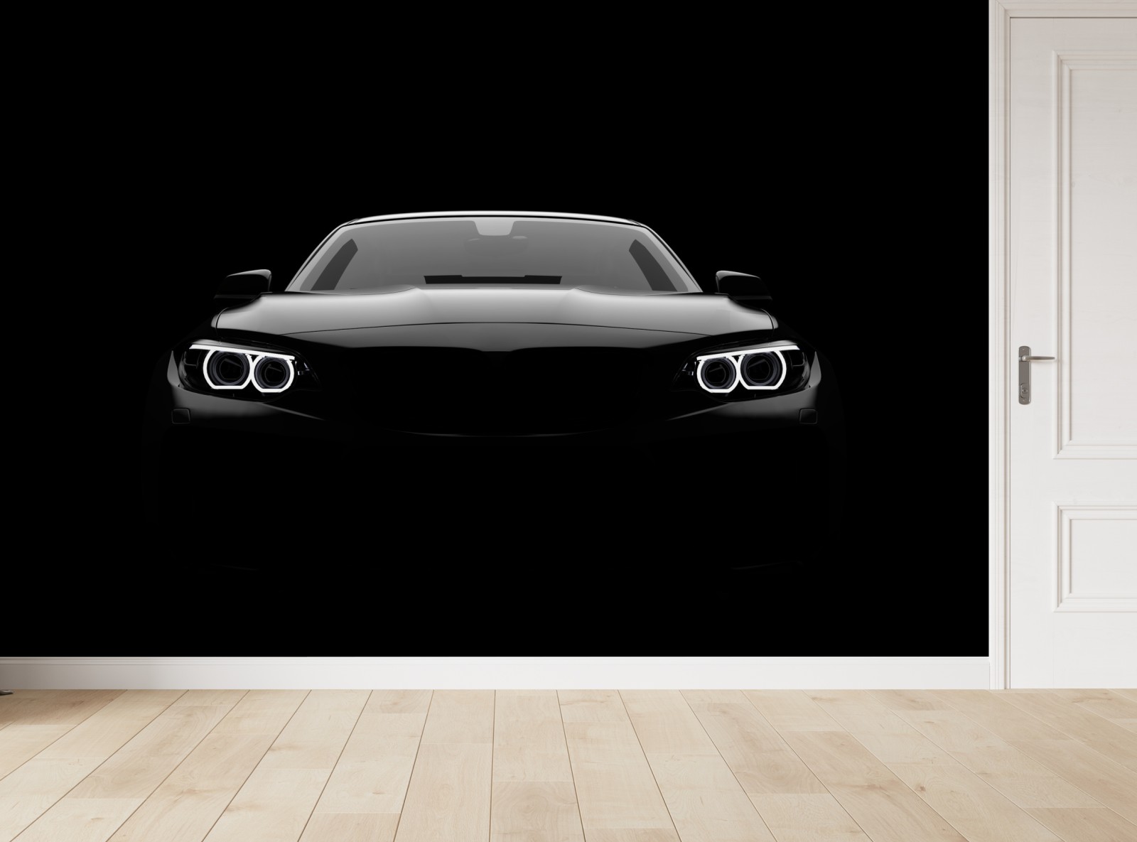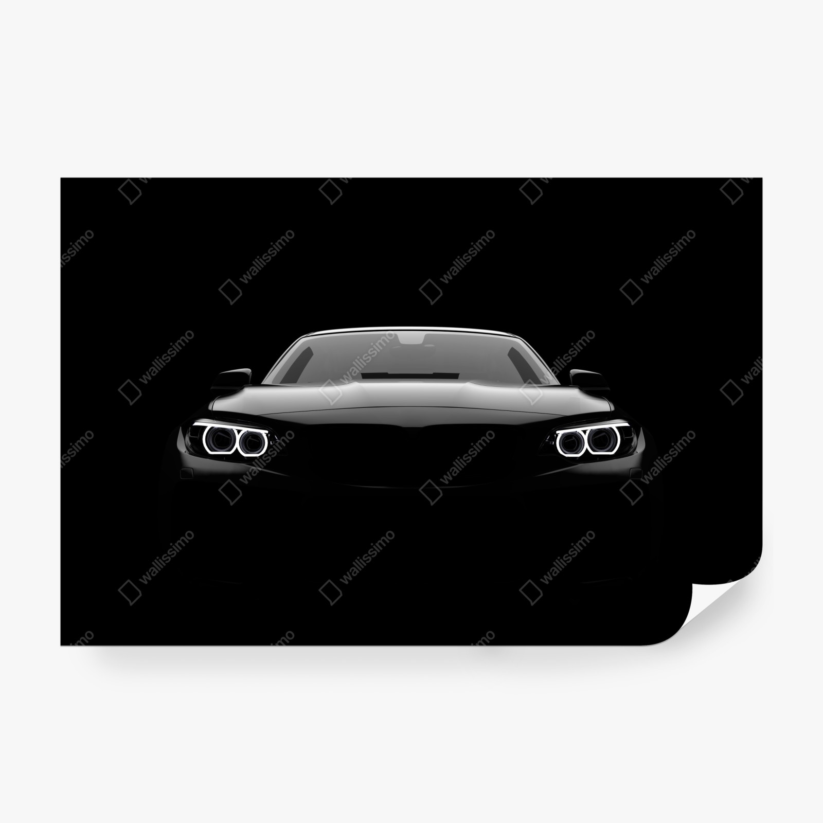 Kontrastreiche Aufnahme eines luxuriösen Sportwagens in dramatischer Silhouette, ideal für moderne Innenräume und Autoenthusiasten.