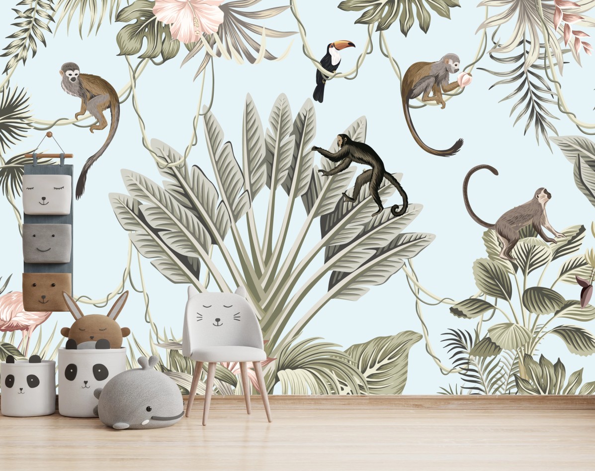 Fototapete Pastell dschungel tier muster