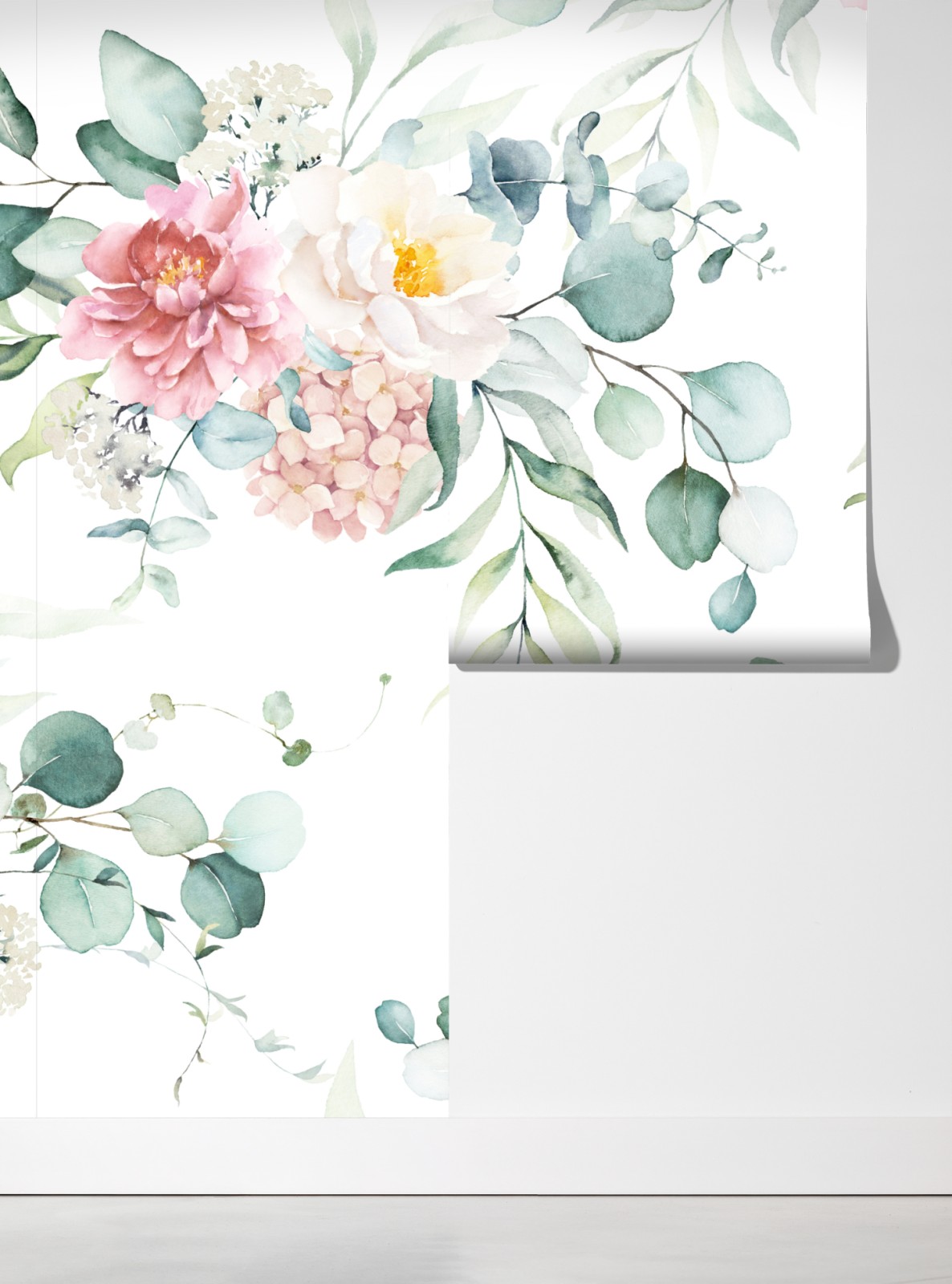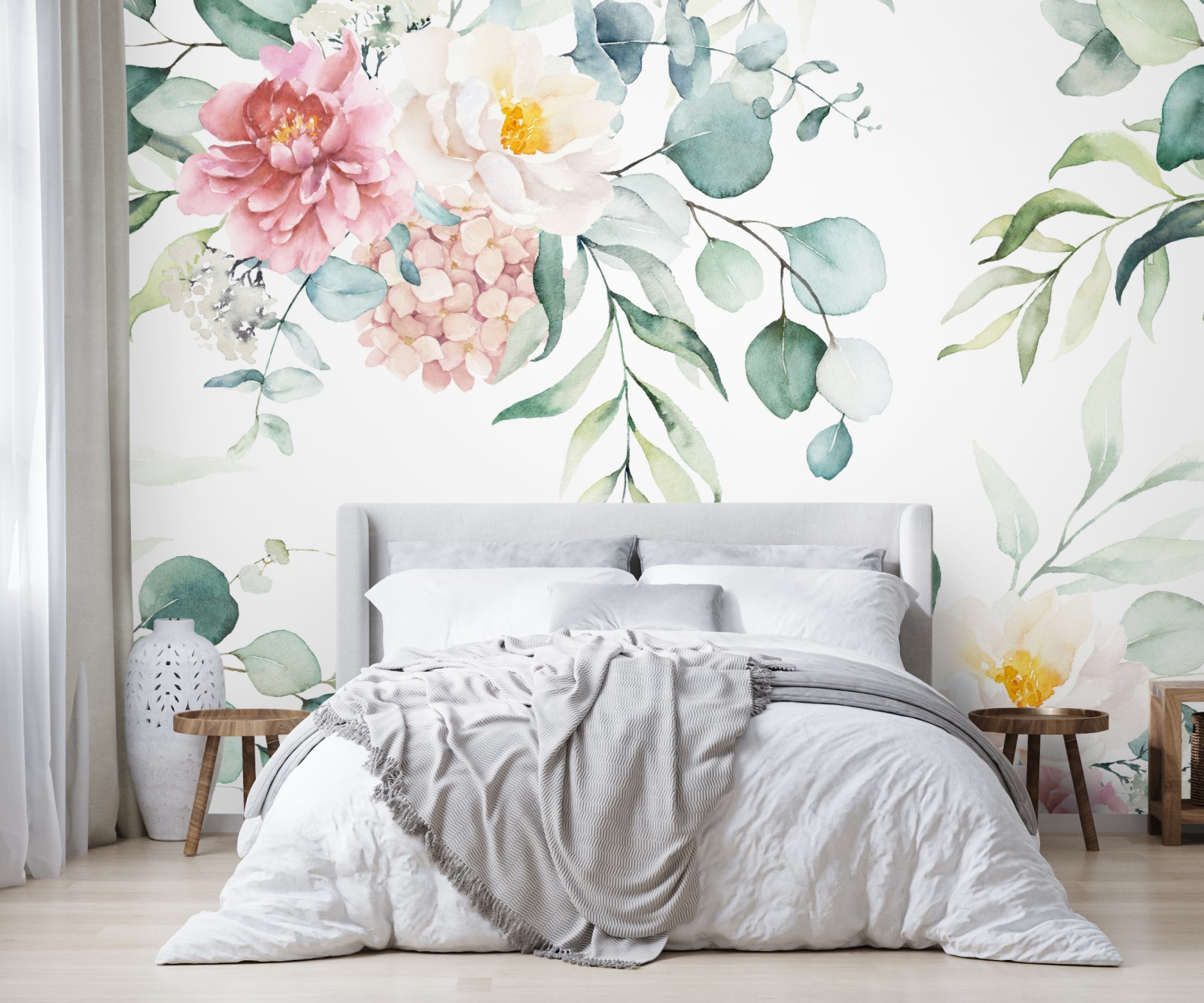 Zarte Aquarellblumen in sanften Pastellfarben verleihen jedem Raum eine ruhige, botanische Atmosphäre.