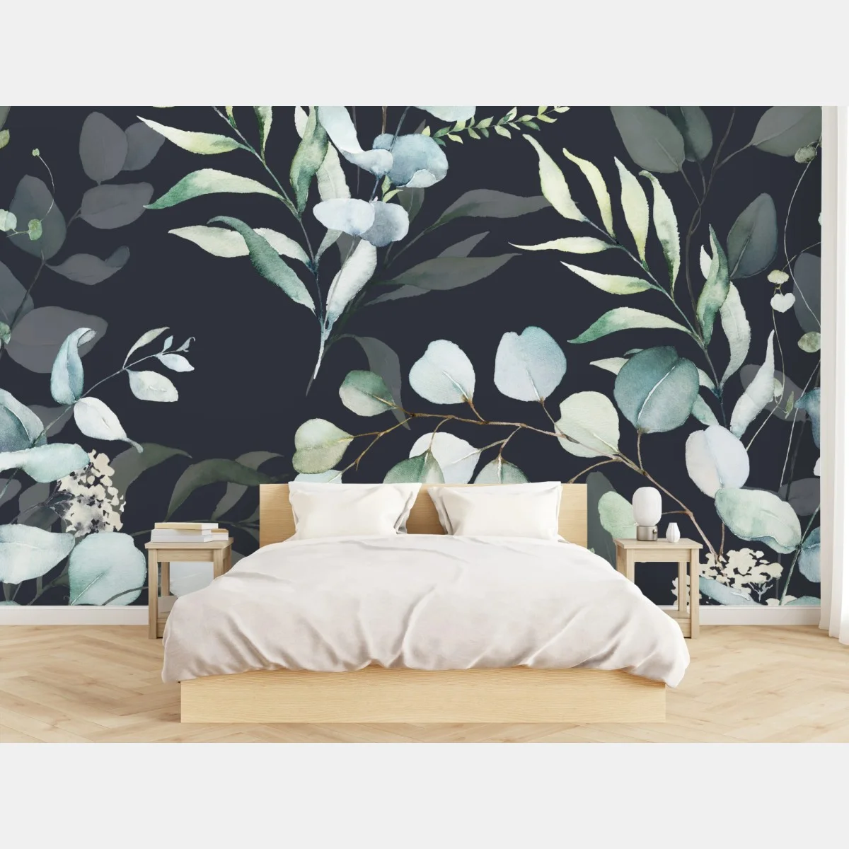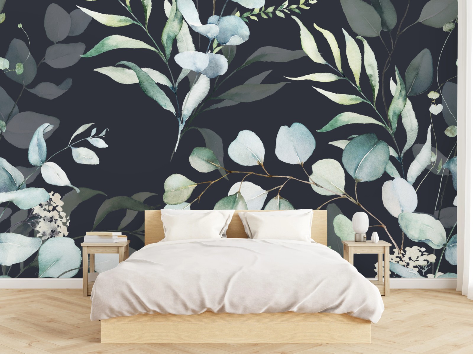Fototapete Eukalyptus aquarell botanisches muster auf dunklem hintergrund