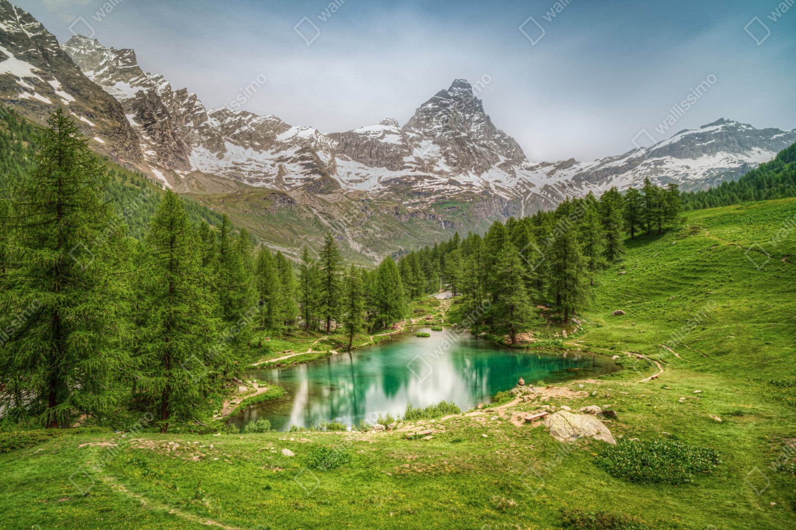 Fototapete türkisfarbener alpensee bei Cervinia – Wallnifity®