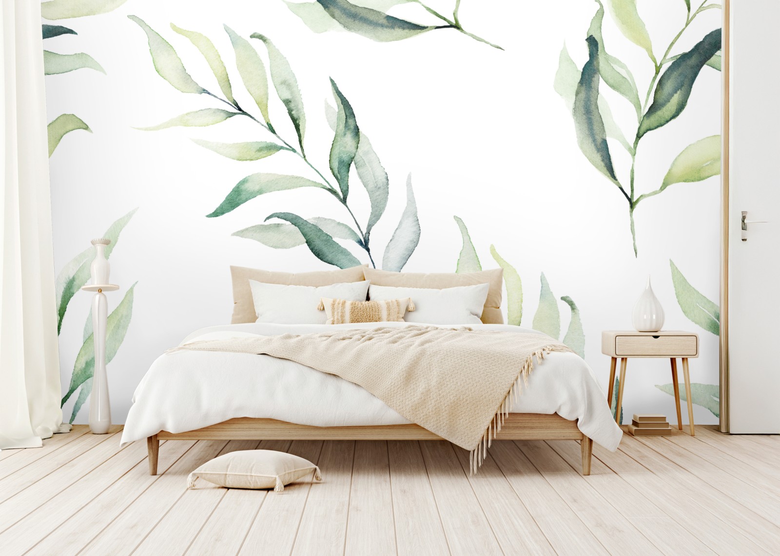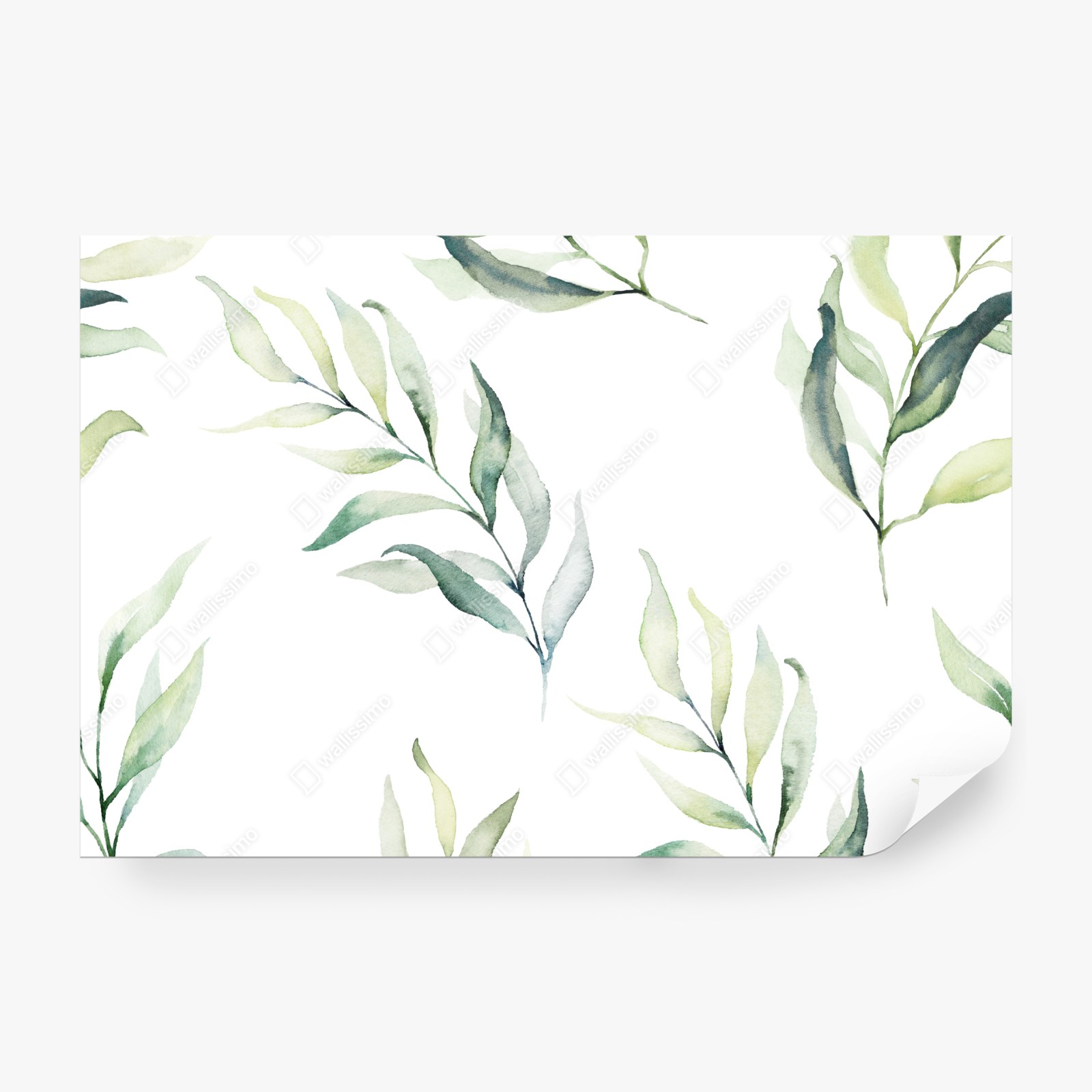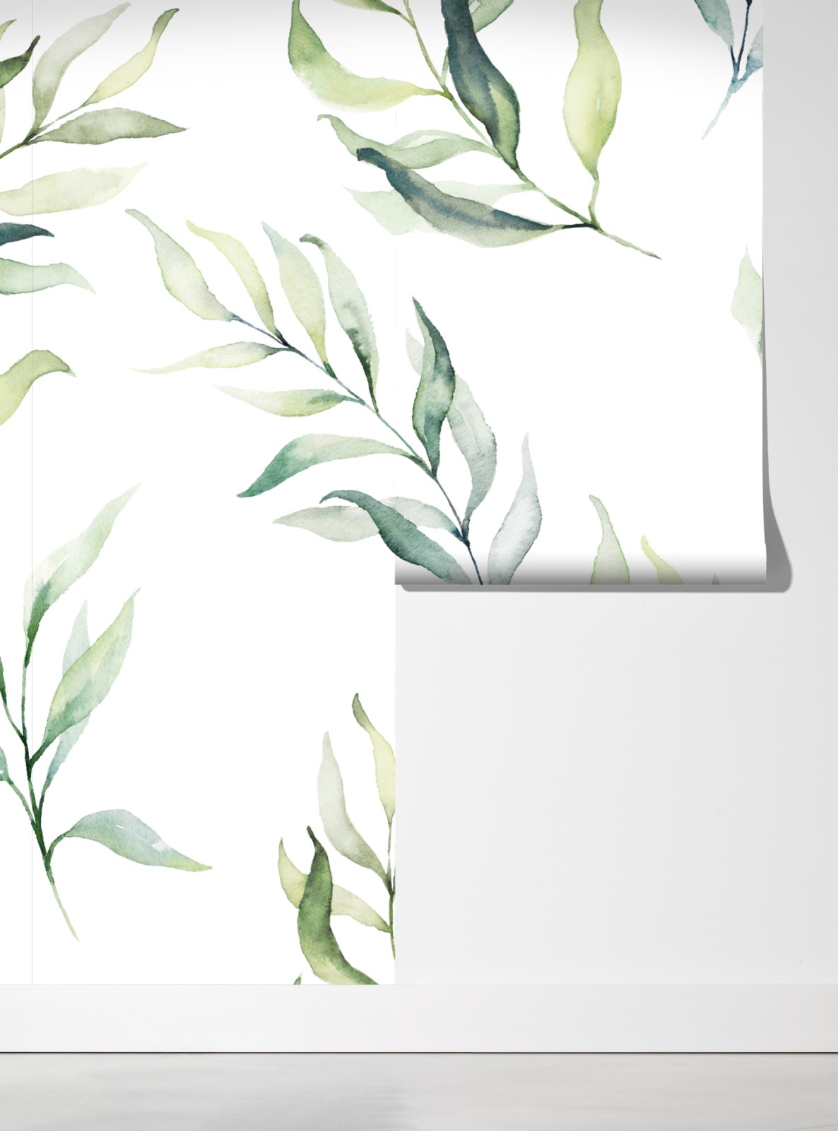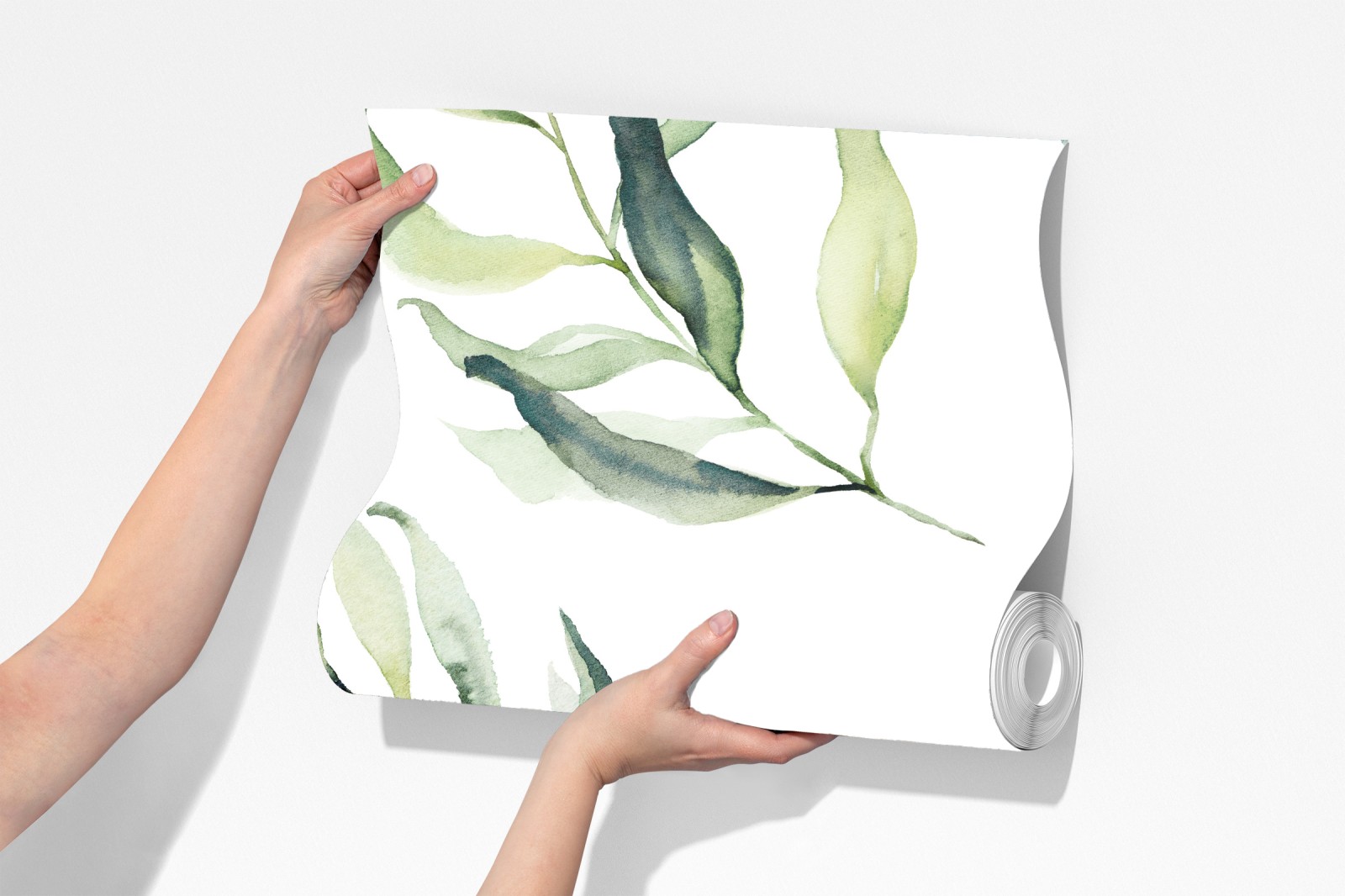 Verleihen Sie Ihrem Raum einen ruhigen, natürlichen Akzent mit einem sanften Aquarellmuster aus grünen Blättern.