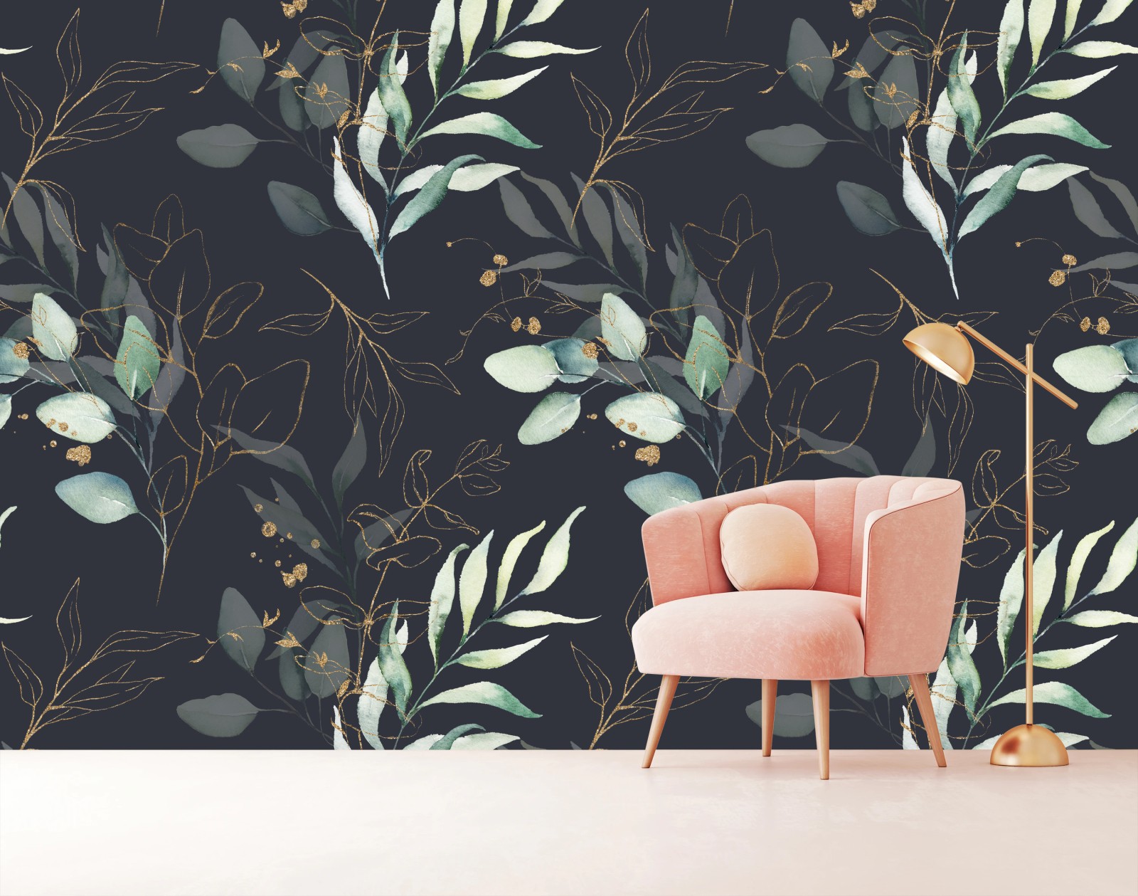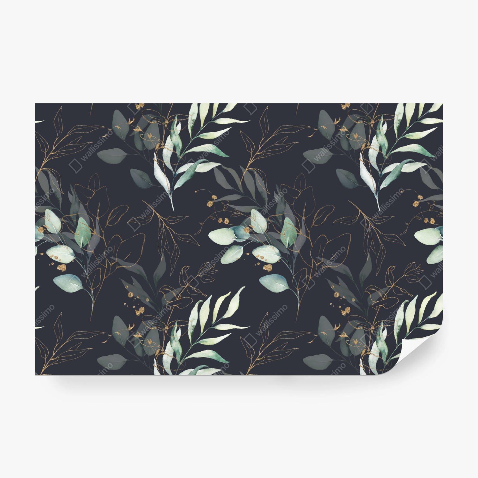 Fototapete Aquarell eukalyptusblätter auf dunklem hintergrund