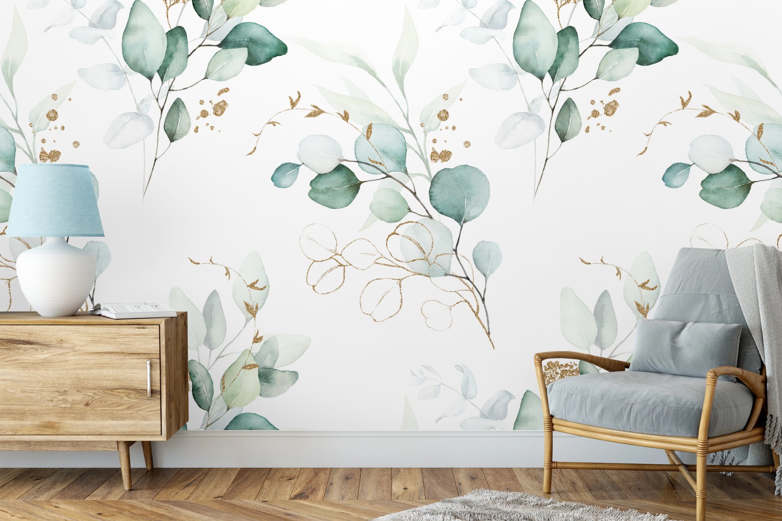 Fototapete Eukalyptus aquarell muster in grüntönen