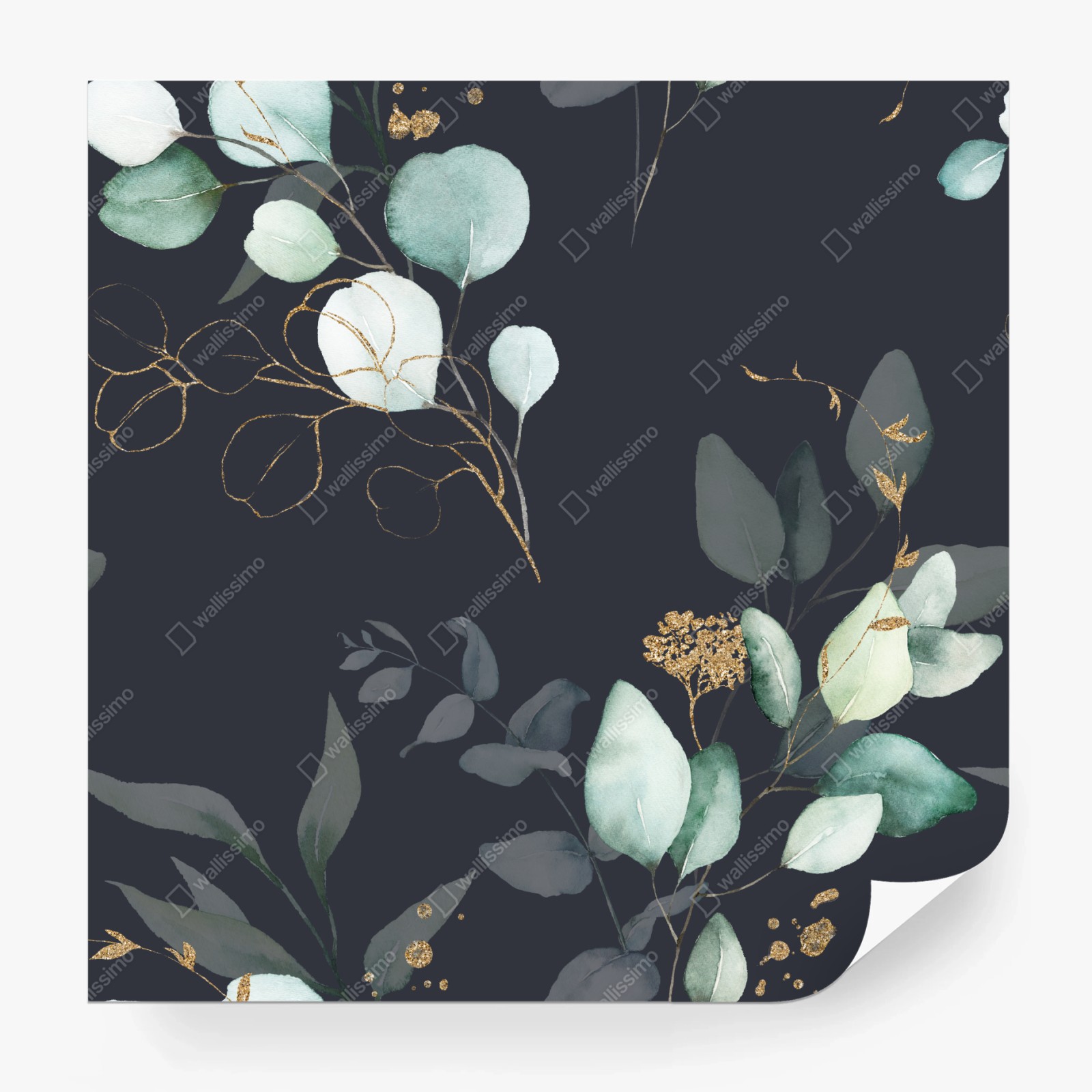 Fototapete Eukalyptus aquarellblätter auf dunklem hintergrund
