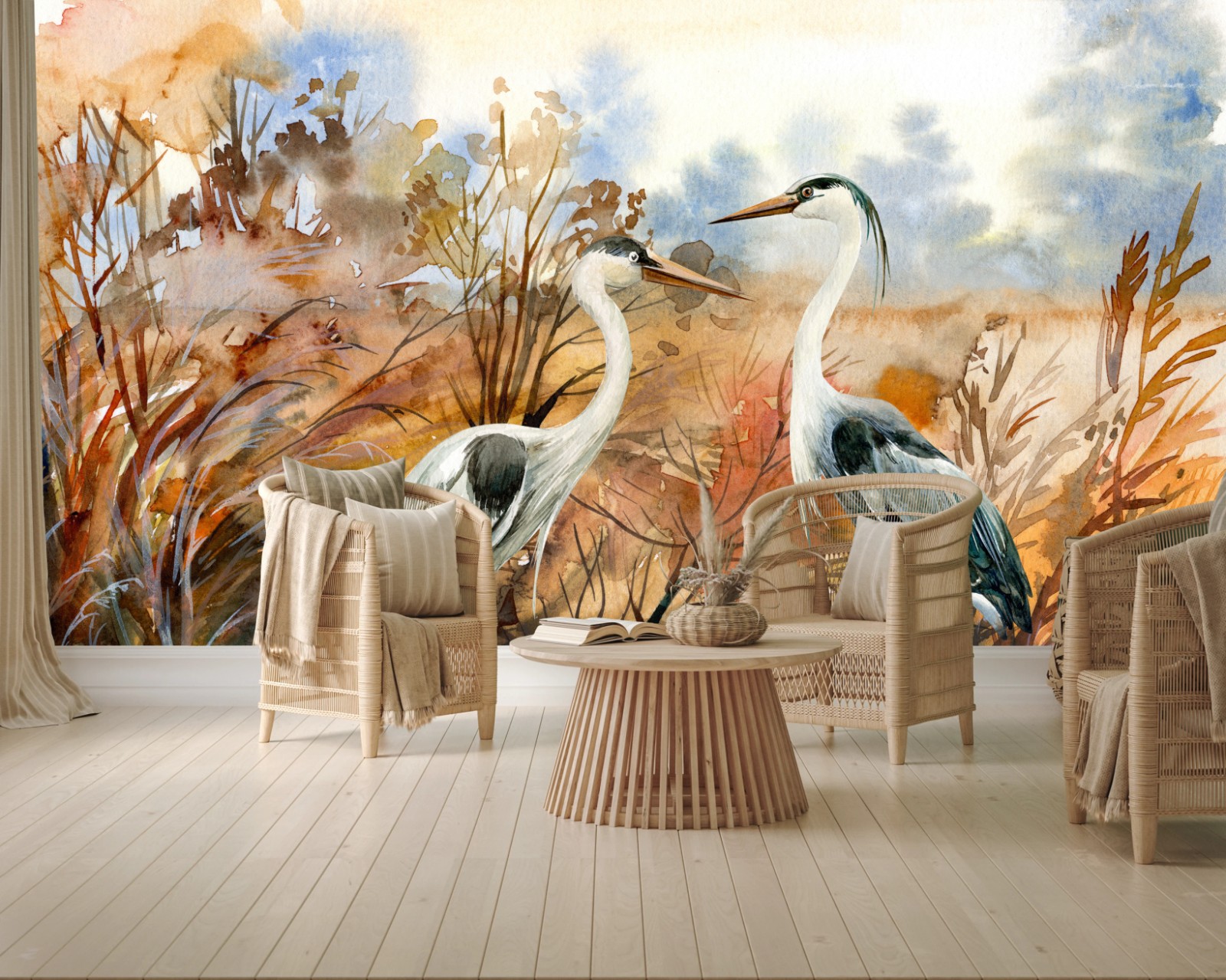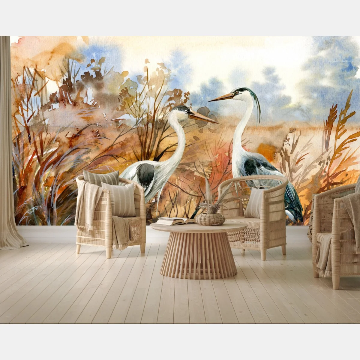 Fototapete Zwei reiher im herbstlichen sumpf