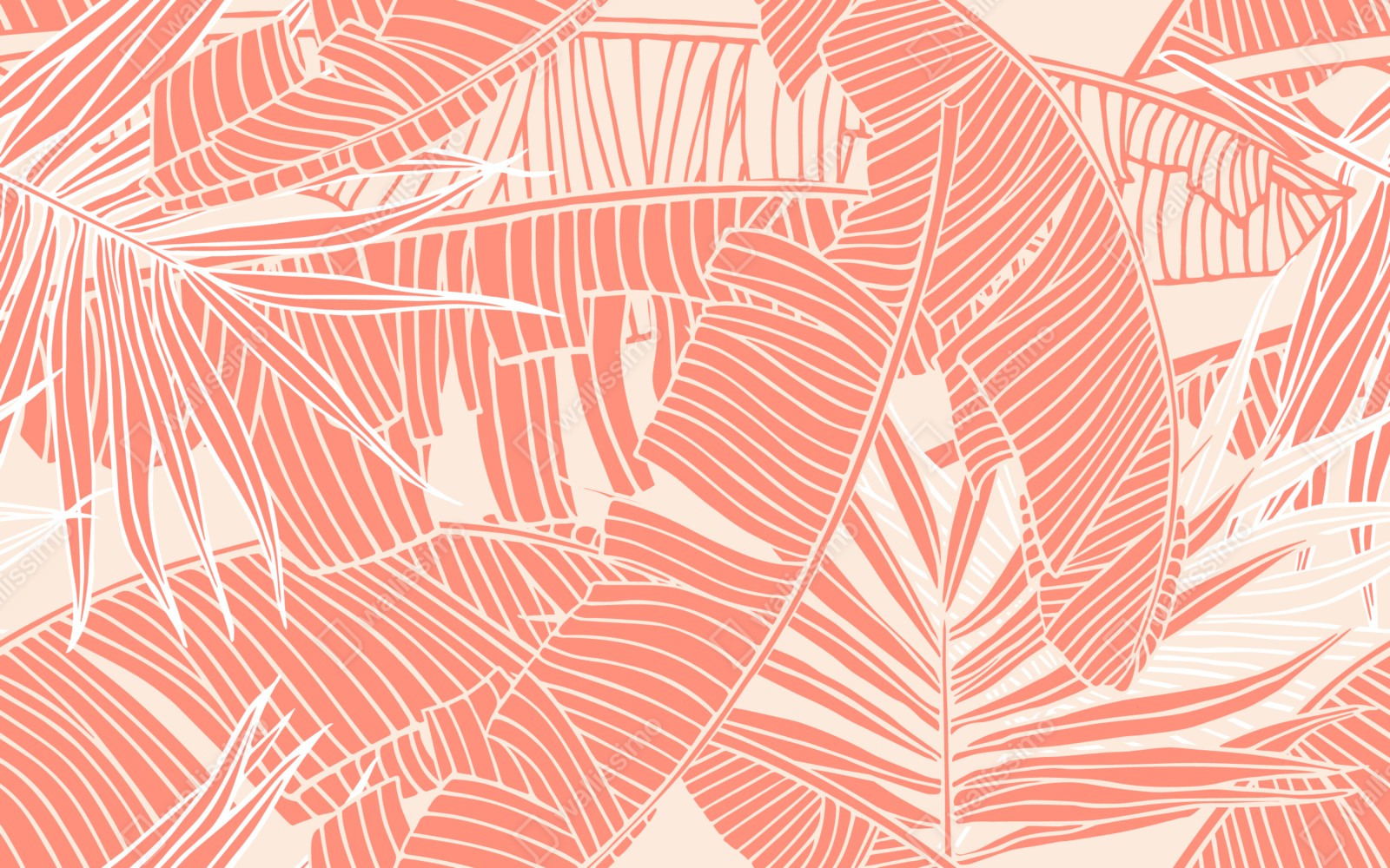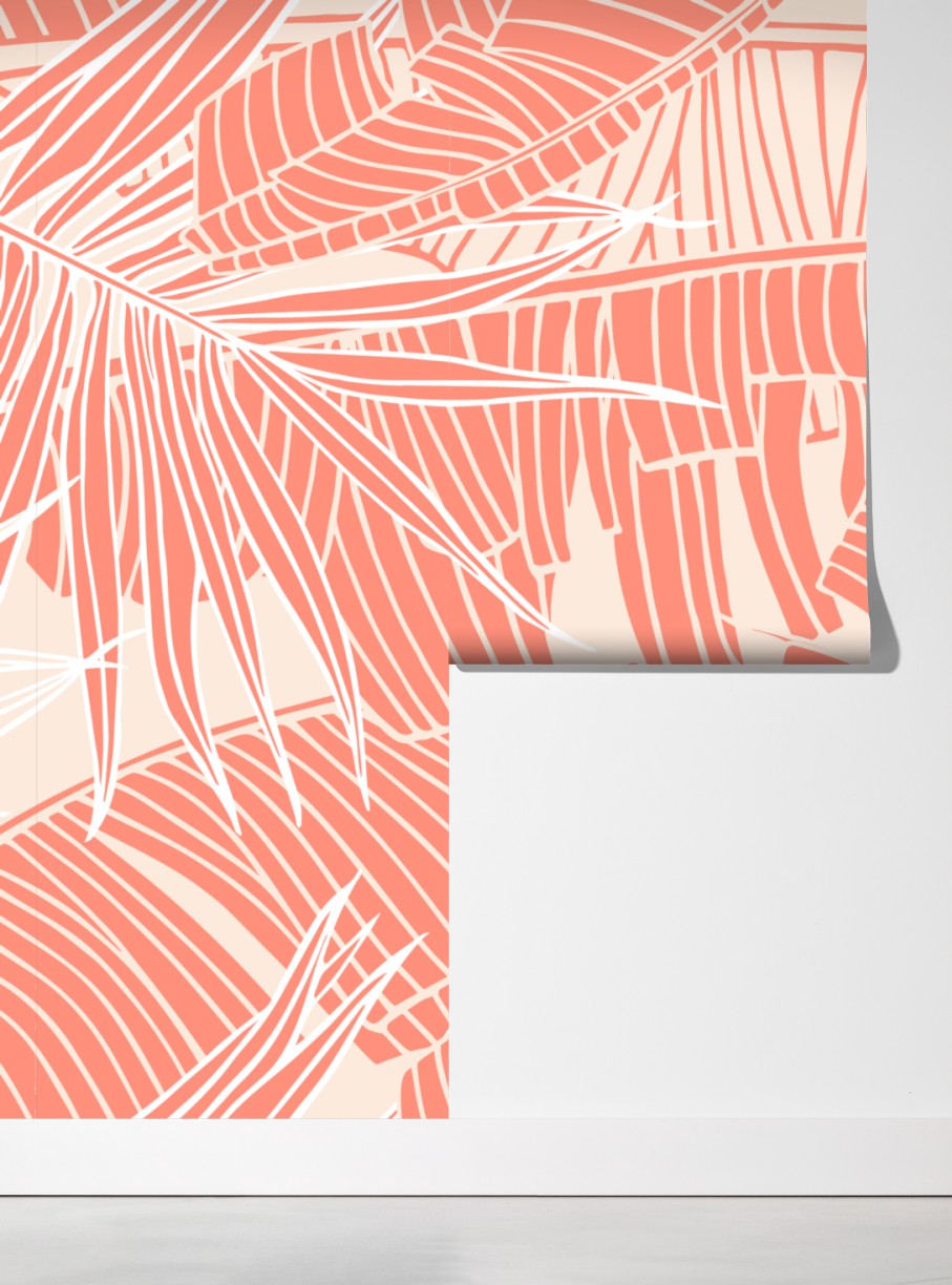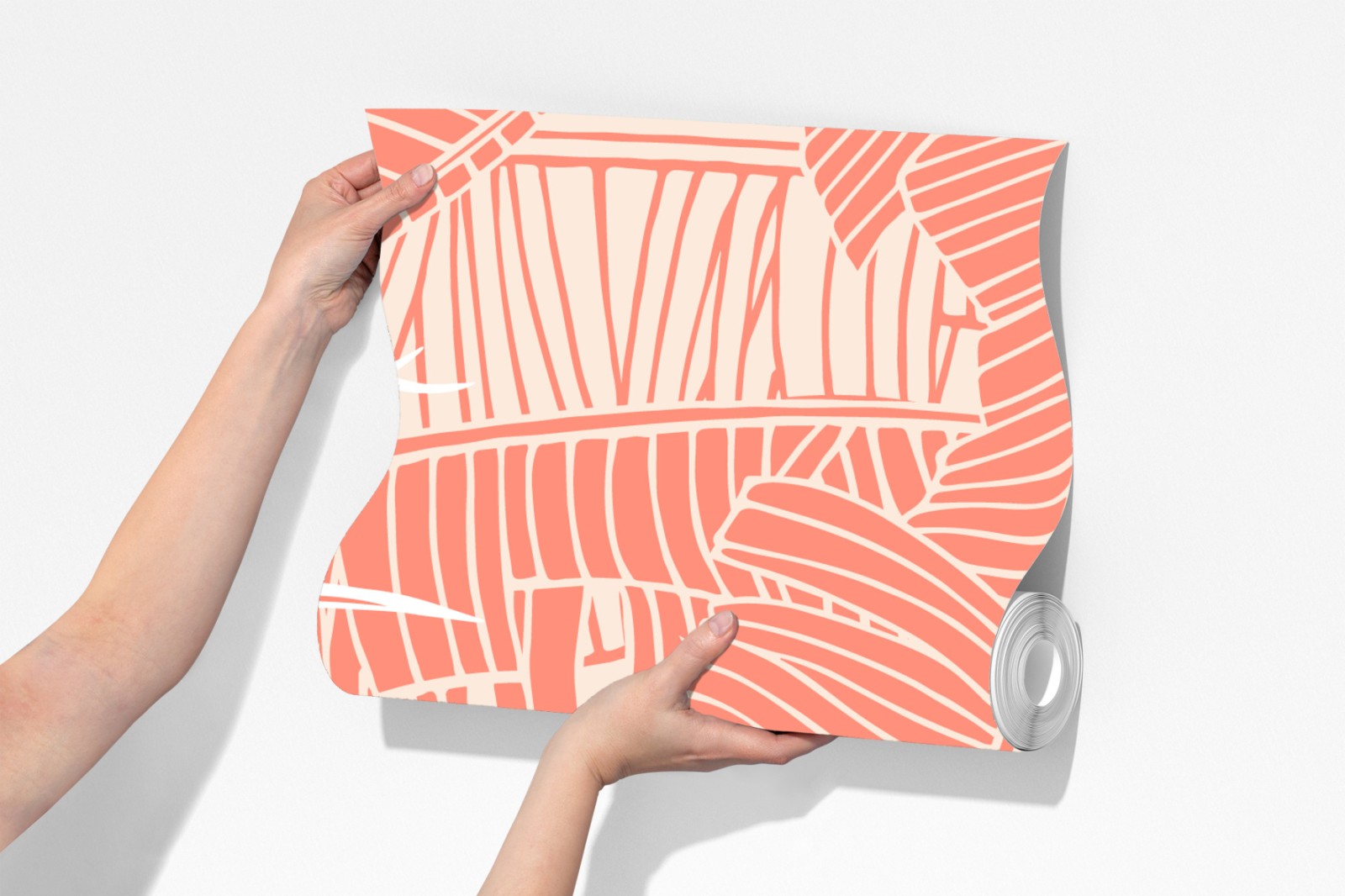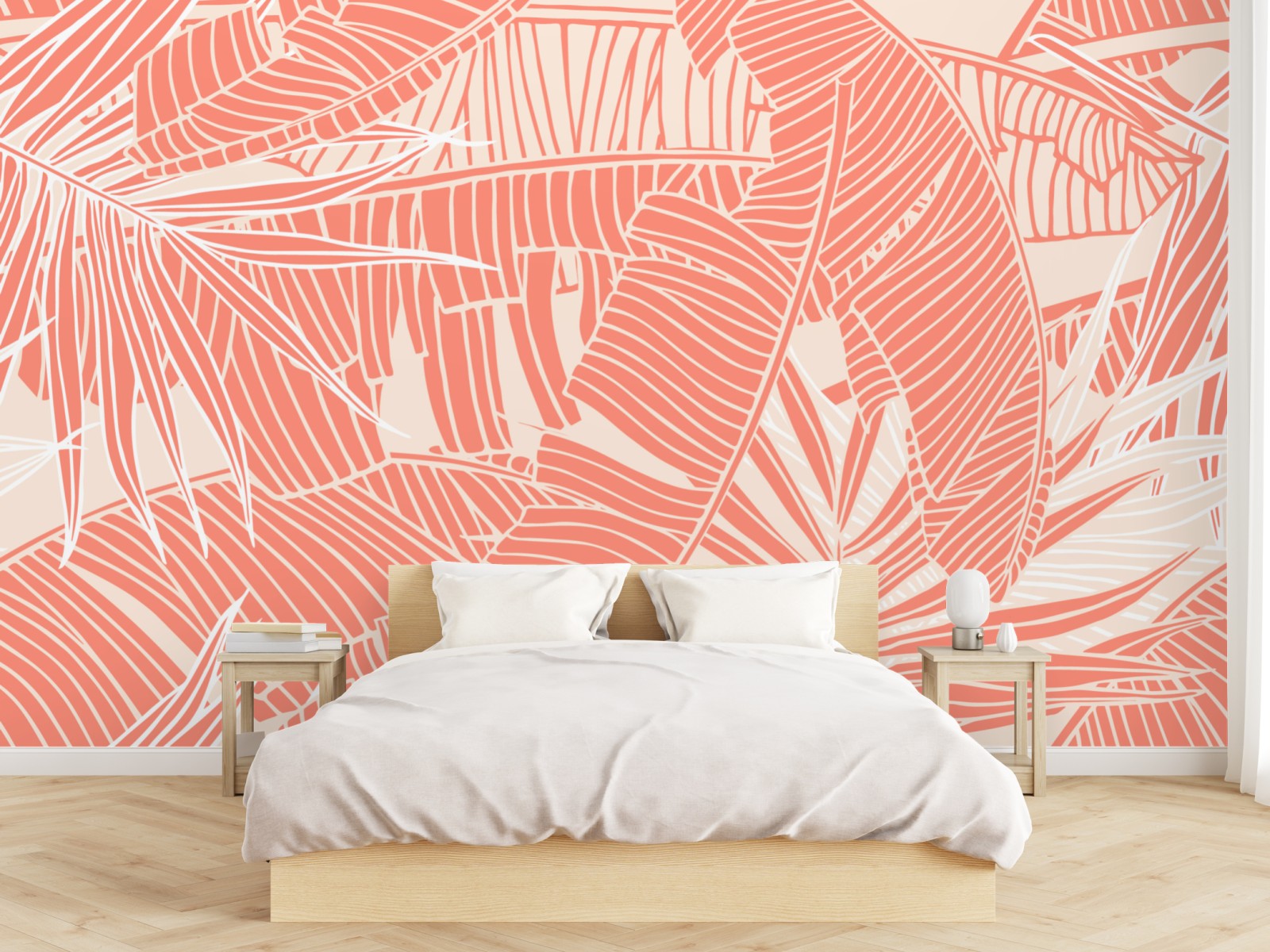 Bringen Sie mit diesem korallenfarbenen tropischen Blattmuster eine beruhigende, botanische Atmosphäre in Ihr Zuhause.