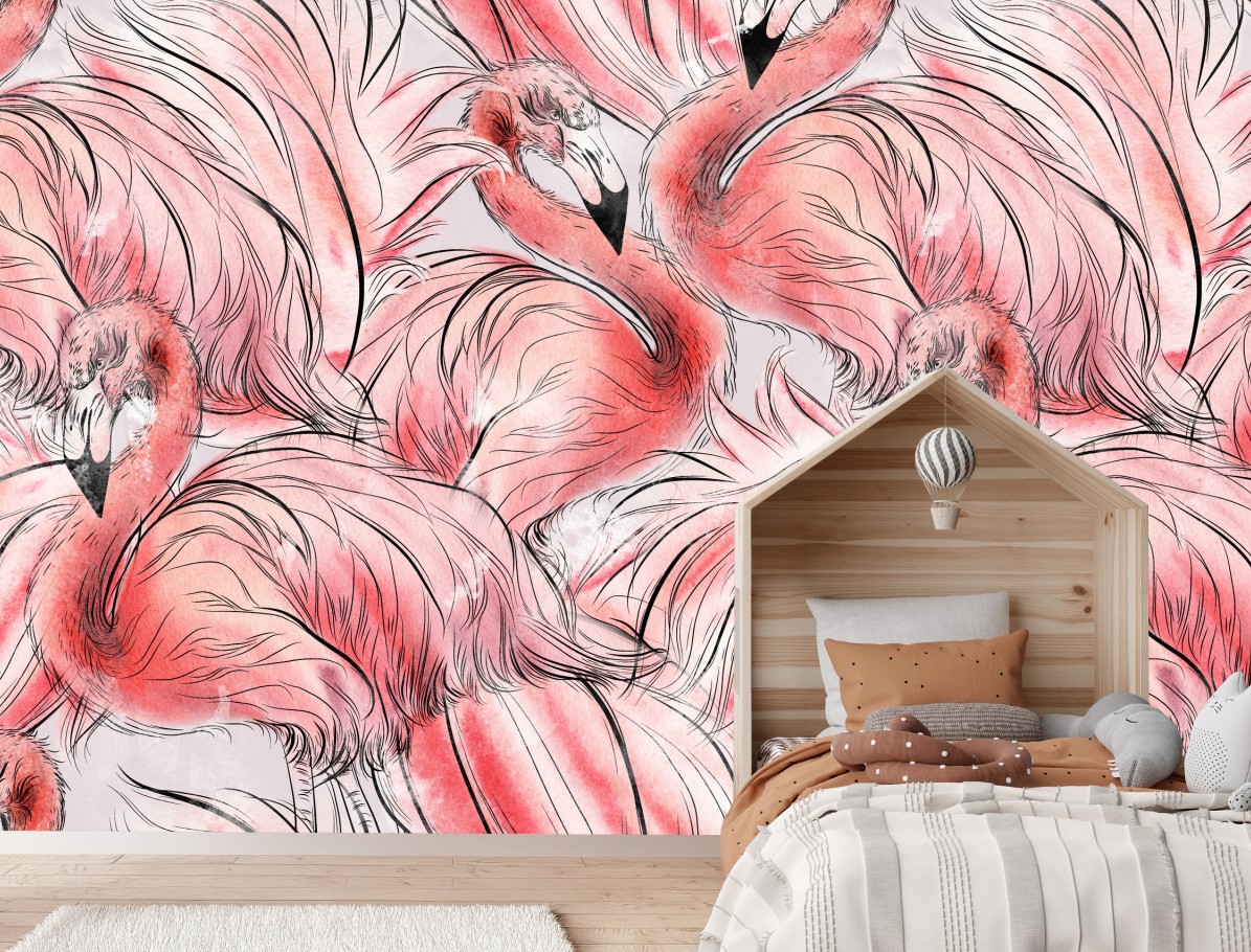 Fototapete Aquarell flamingo nahtloses muster