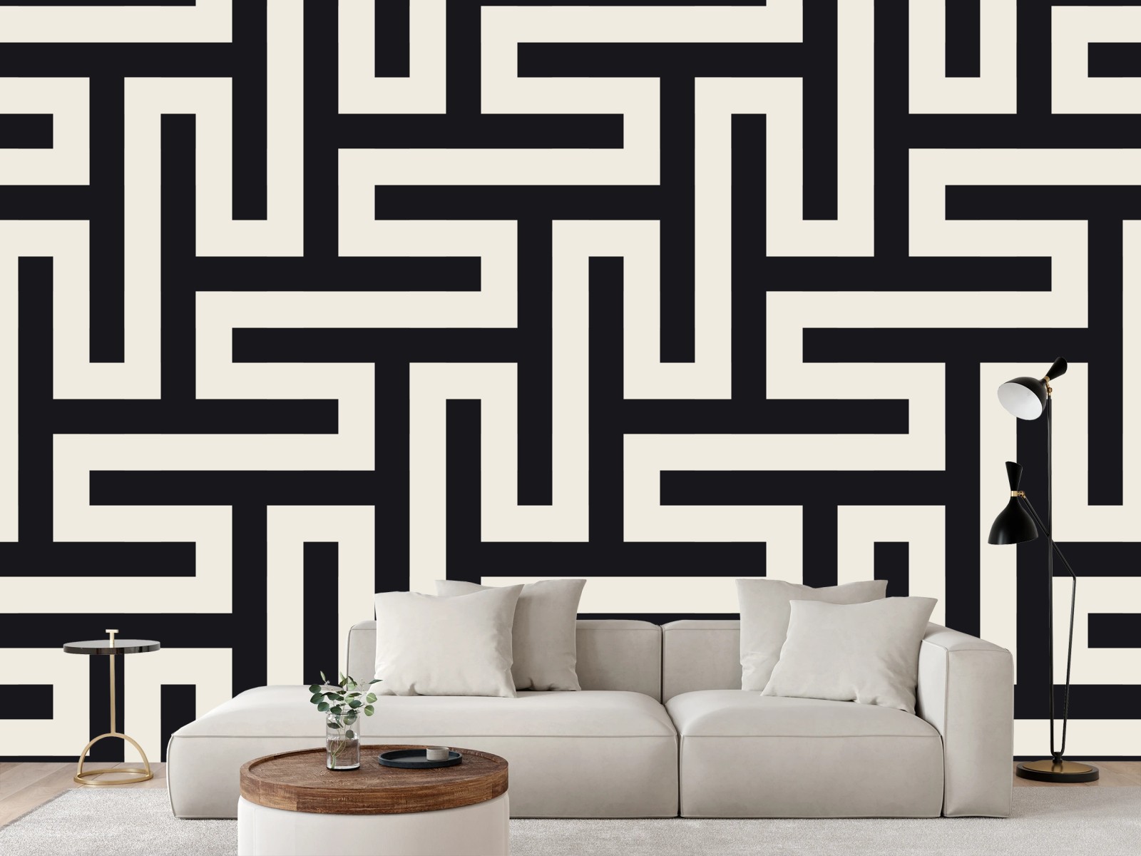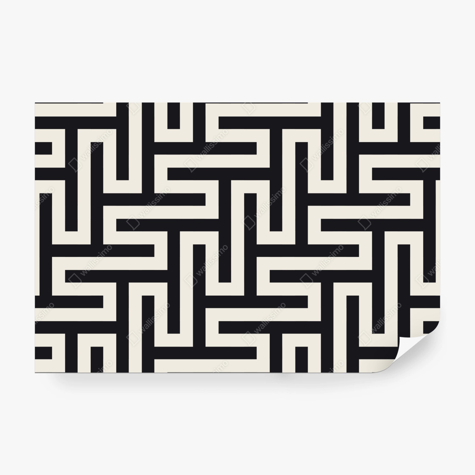 Fototapete Geometrisches labyrinthmuster in beige und schwarz