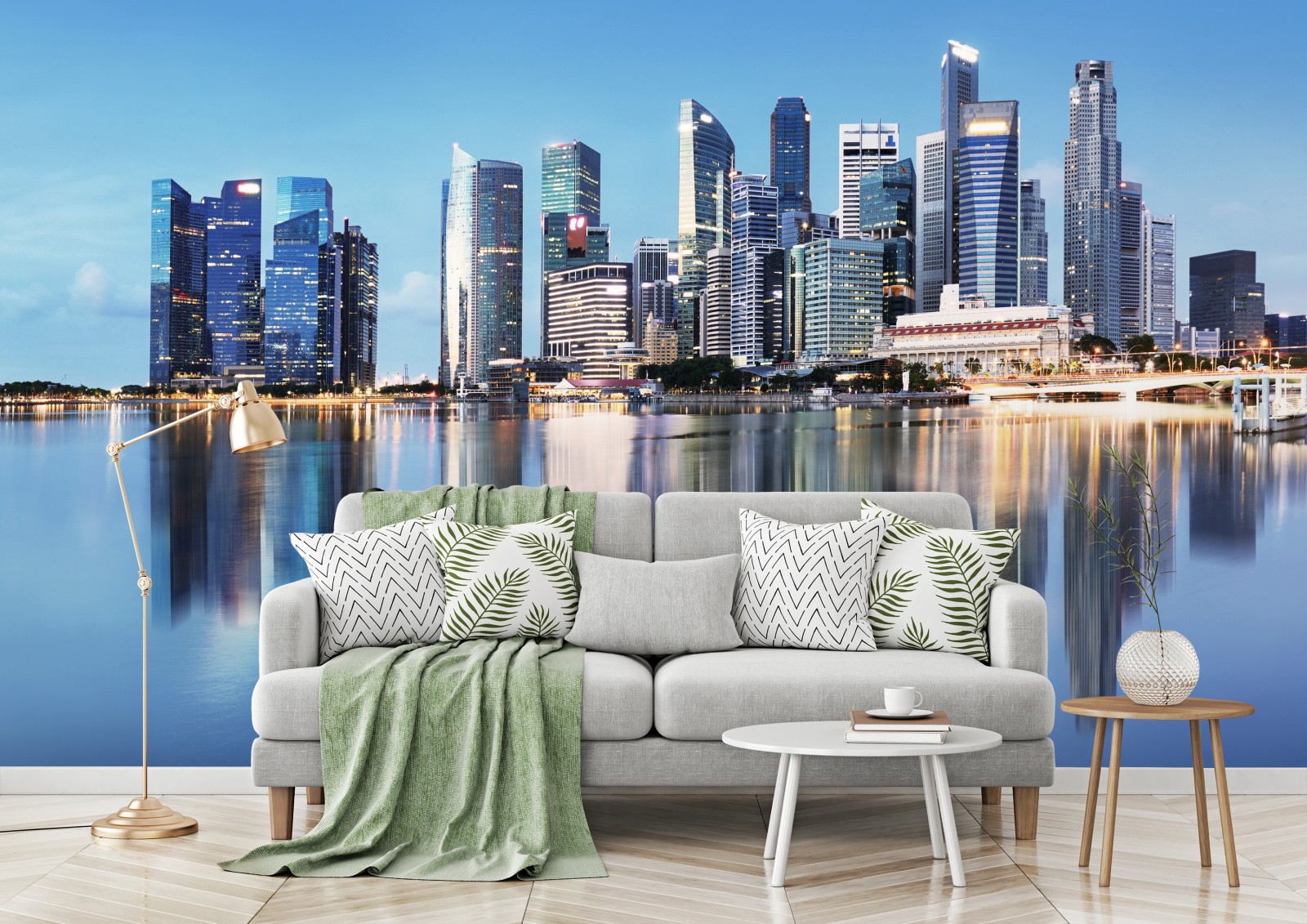 Fototapete Moderne stadtskyline gespiegelt im wasser