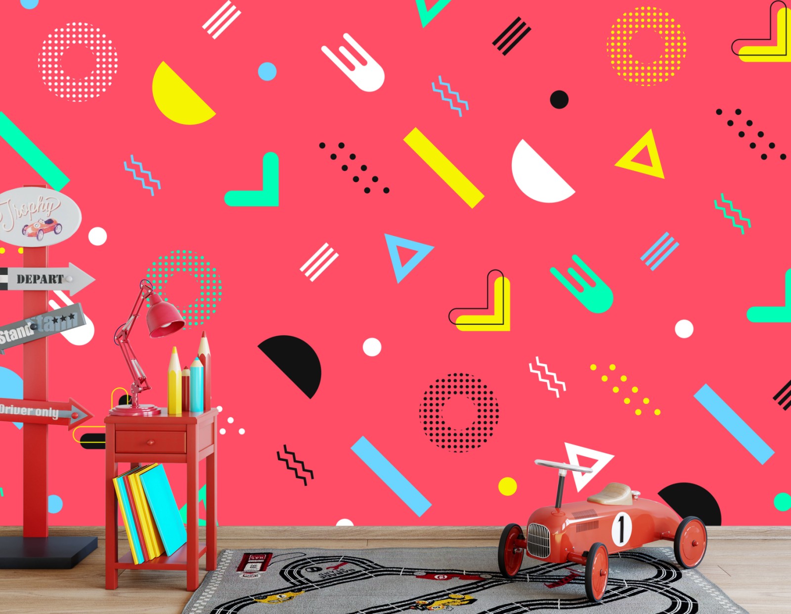 Leuchtendes geometrisches Muster verleiht jedem Raum retro Charme und lebendige Farbakzente, ideal um Persönlichkeit und Spaß hinzuzufügen.