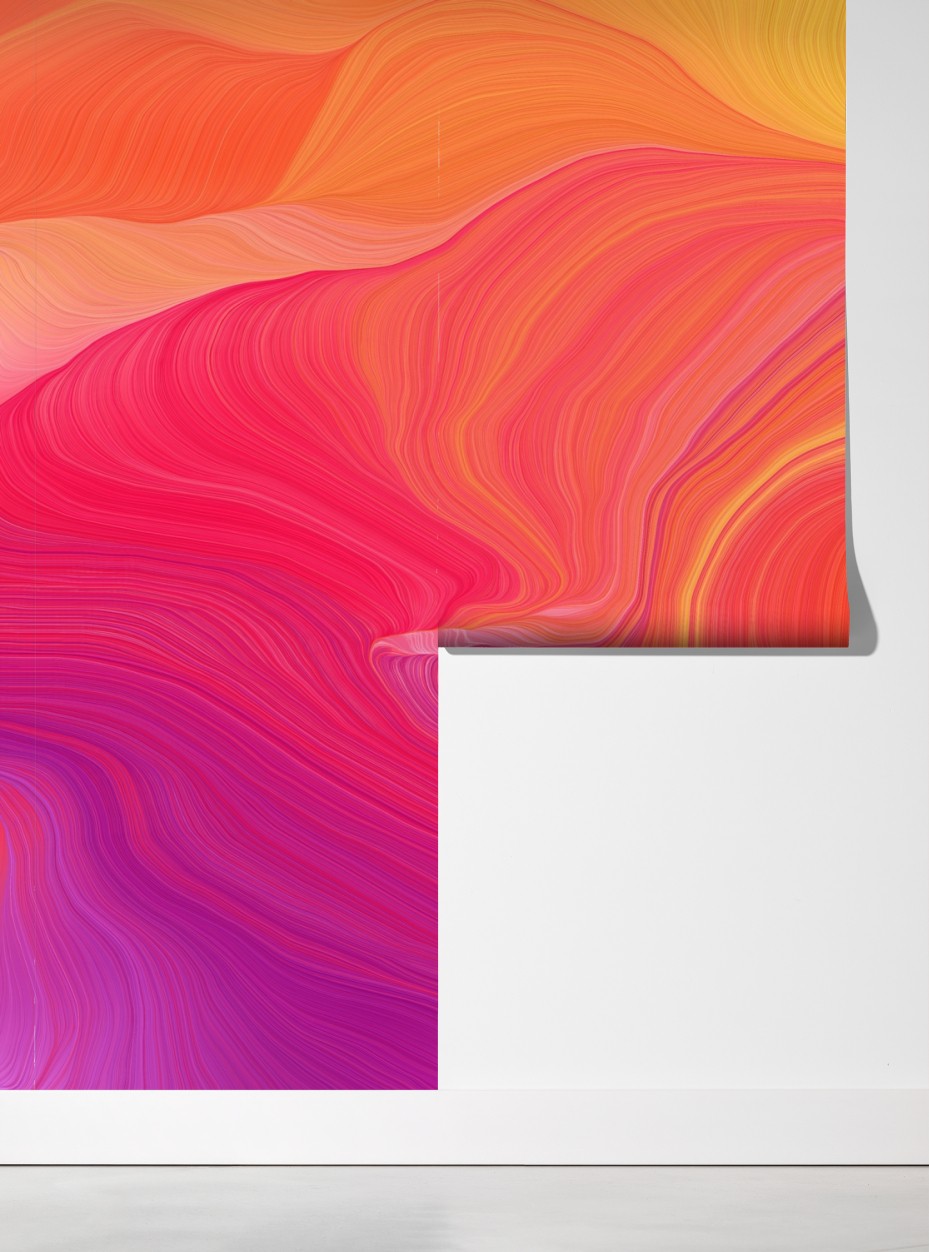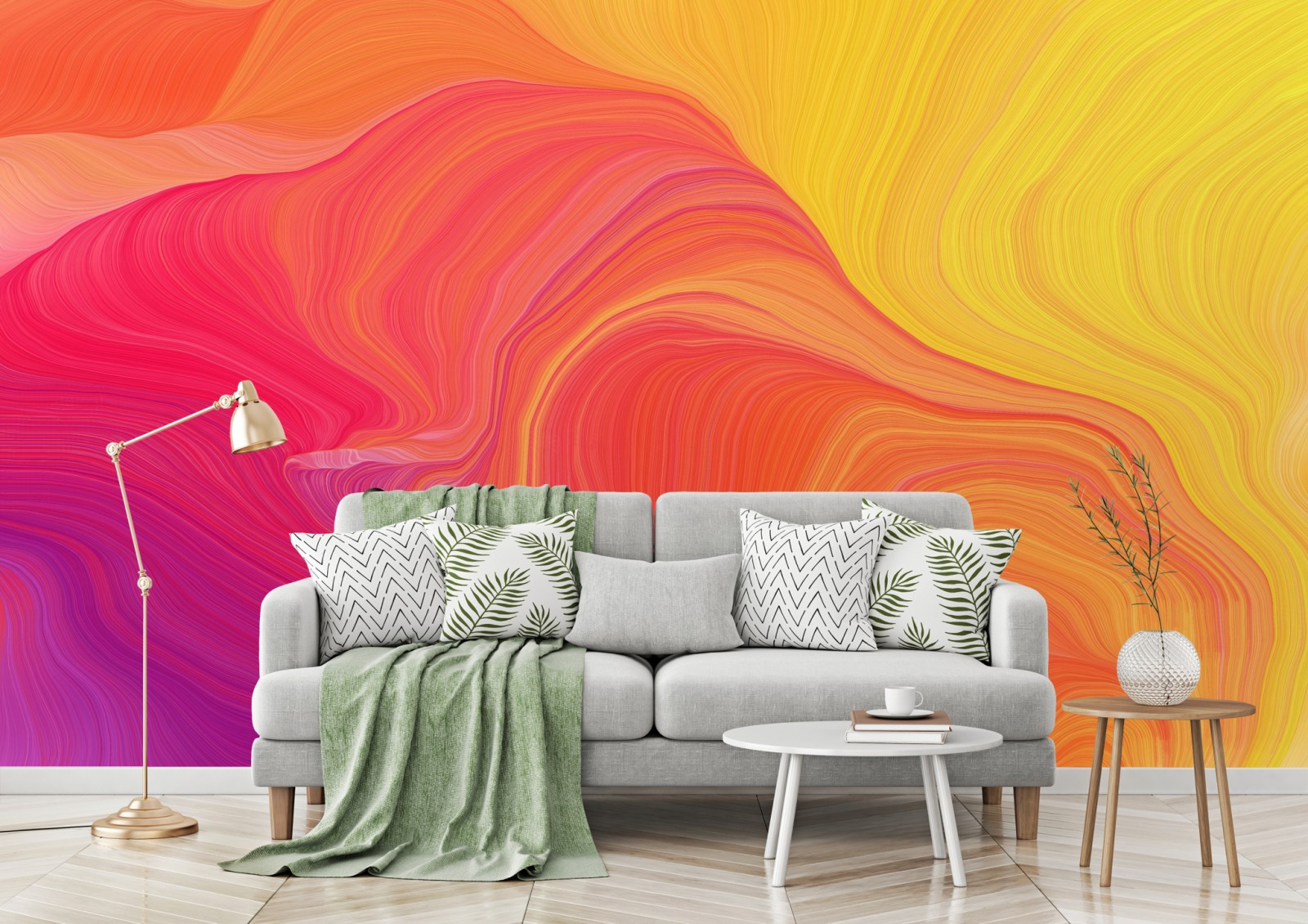 Fügen Sie mit diesem lebendigen abstrakten Kunstwerk, das fließende Wirbel und satte Farbverläufe zeigt, einen Farbtupfer zu Ihrem Raum hinzu.
