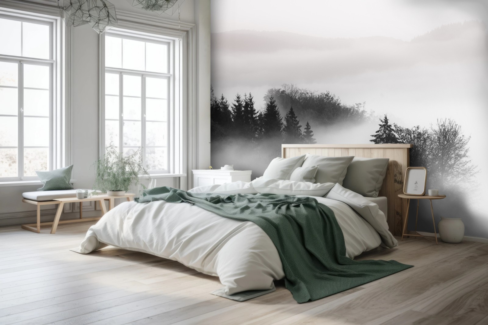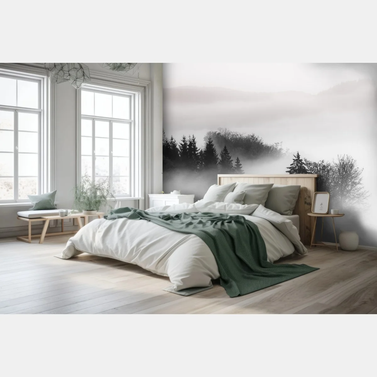 Fototapete Nebliger wald in grautönen