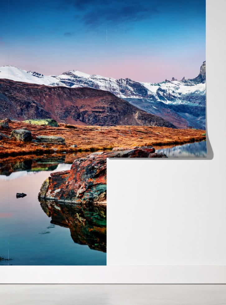 Fototapete spiegelung am Matterhorn bei sonnenaufgang