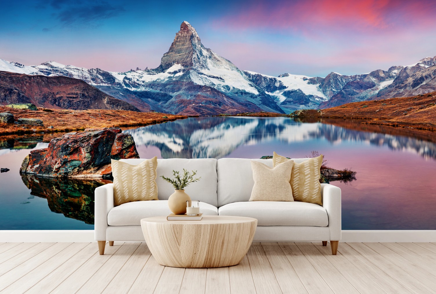Fototapete Spiegelung am Matterhorn bei sonnenaufgang