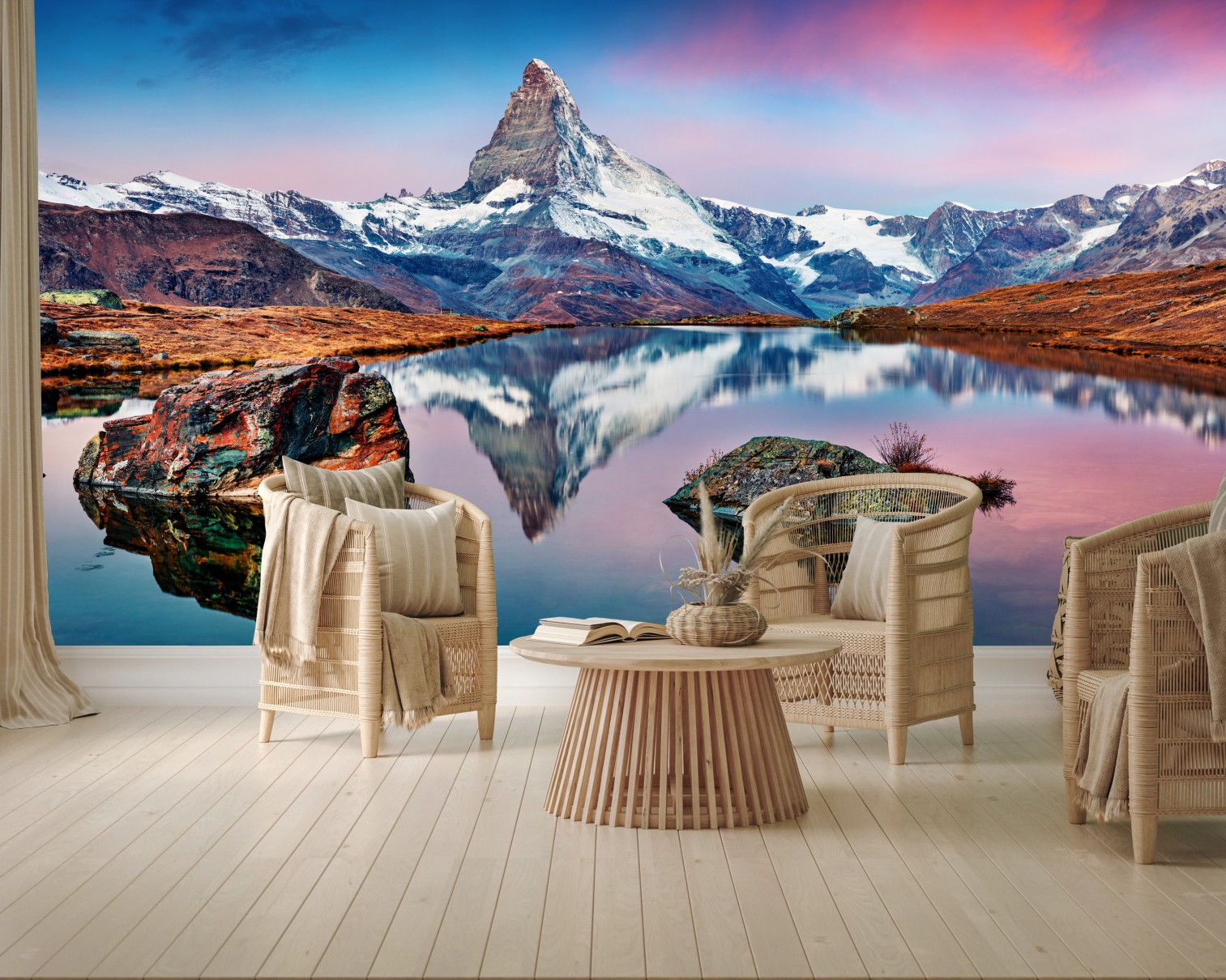 Fototapete Spiegelung am Matterhorn bei sonnenaufgang