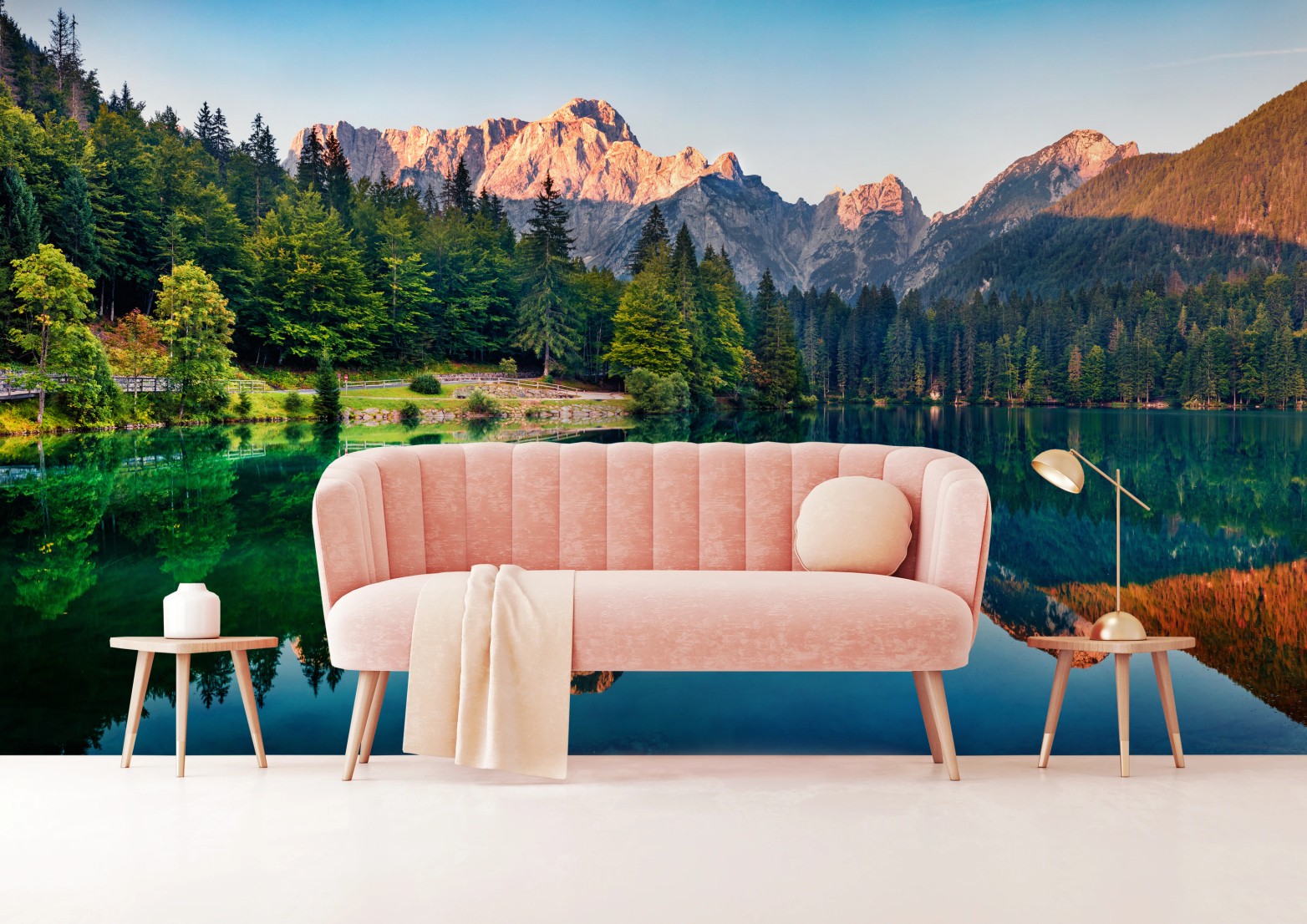 Fototapete Ruhiger morgen am Fusine See, Julische Alpen