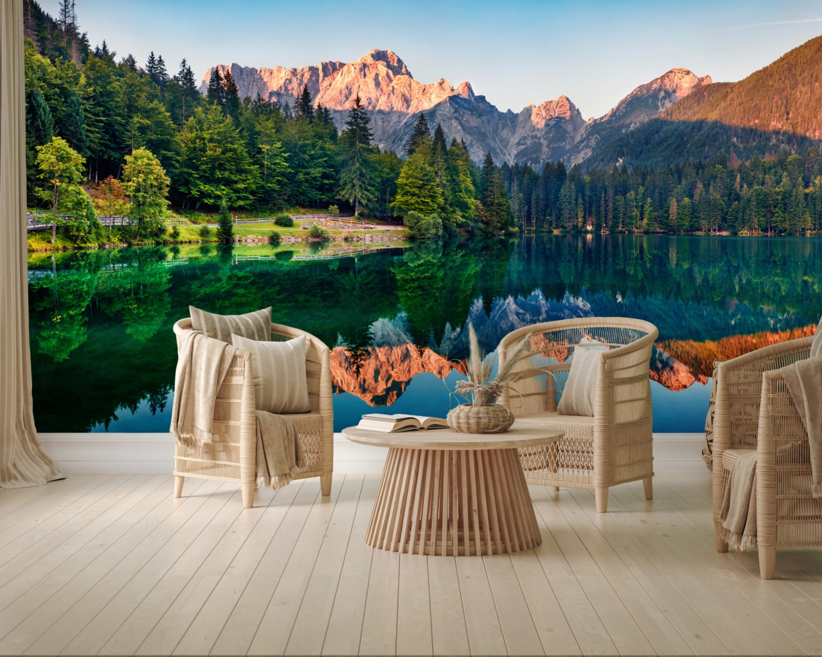 Fototapete Ruhiger morgen am Fusine See, Julische Alpen