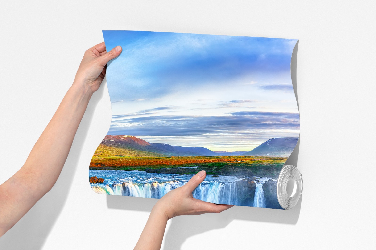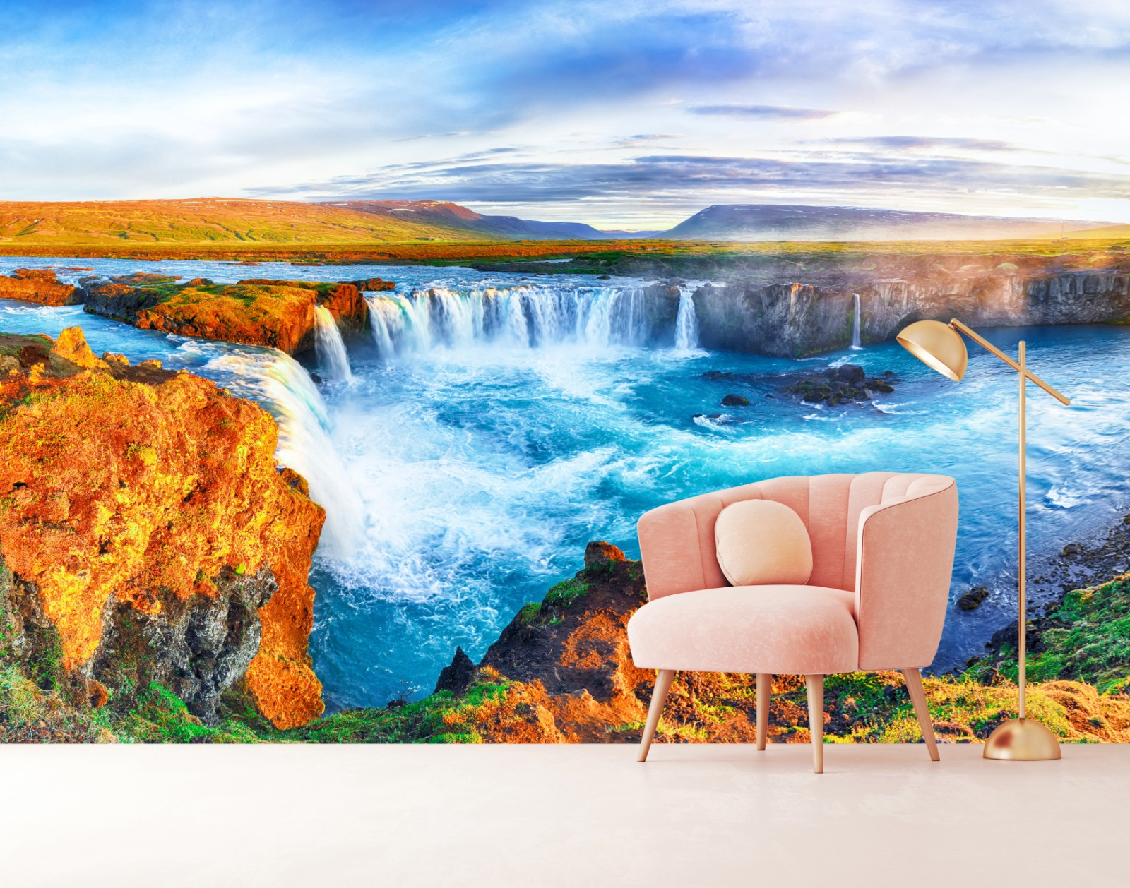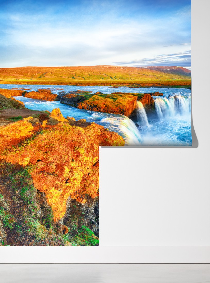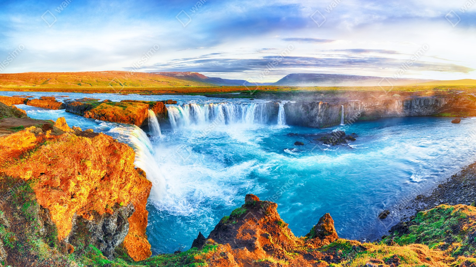 Fototapete panorama des wasserfalls Godafoss bei sonnenaufgang
