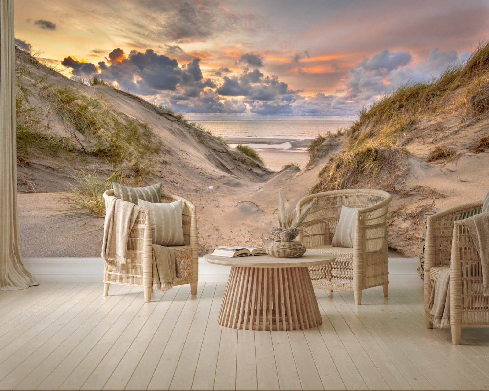 Fototapete Sonnenuntergang über den dünen