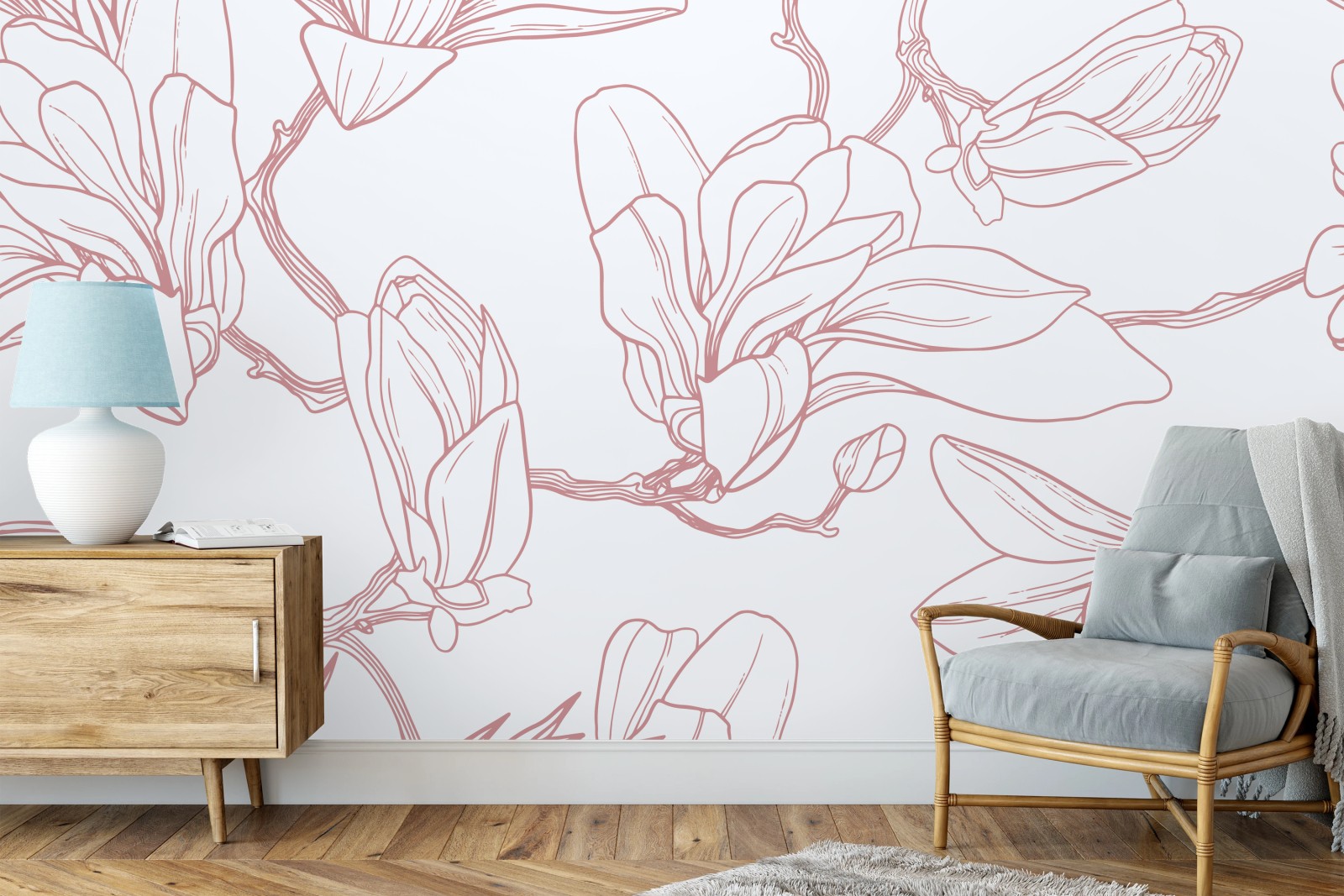 Fototapete Zartes magnolienmuster in sanftem rosa