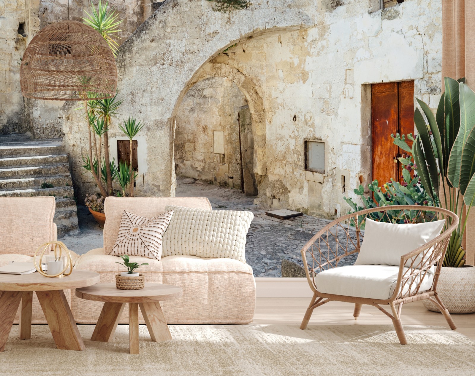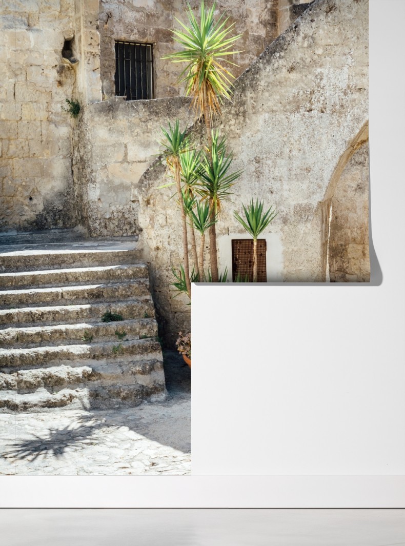 Fototapete mediterraner steinhof mit bogen