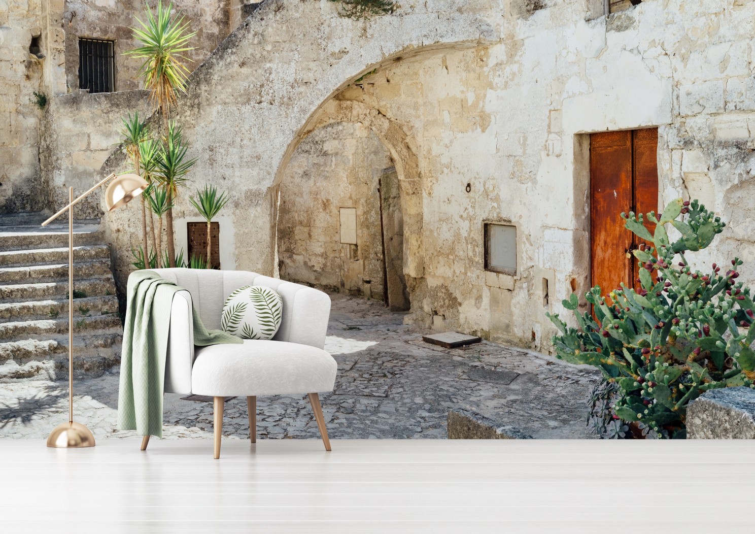 Fototapete Mediterraner steinhof mit bogen