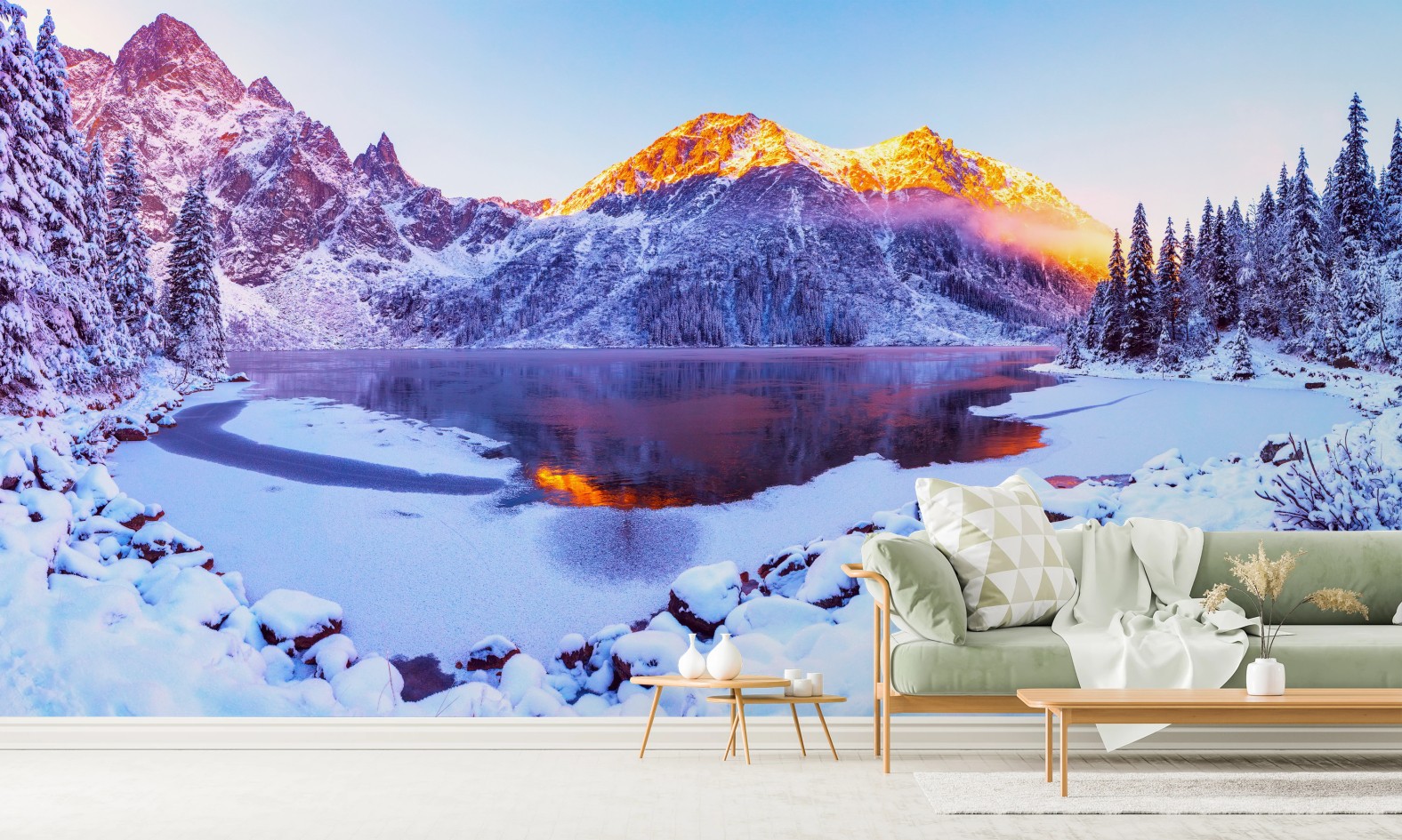 Fototapete Sonnenbeschienene berge über gefrorenem alpensee